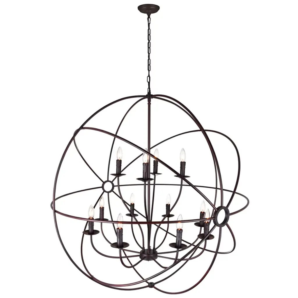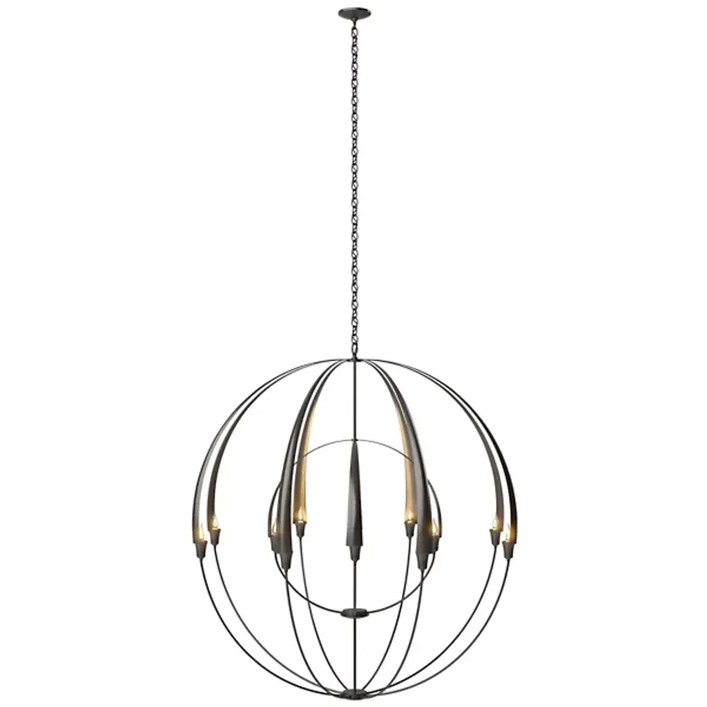 More is more in the Hubbardton Forge Double Cirque Chandelier. Building on the minimalist elegance of the original Cirque Chandelier, this fixture doubles the drama with a second orb nestled inside the outer frame. Exposed bulbs are tucked into the base of each petal-like wrought iron frond, creating a warm look reminiscent of an antique armillary sphere.