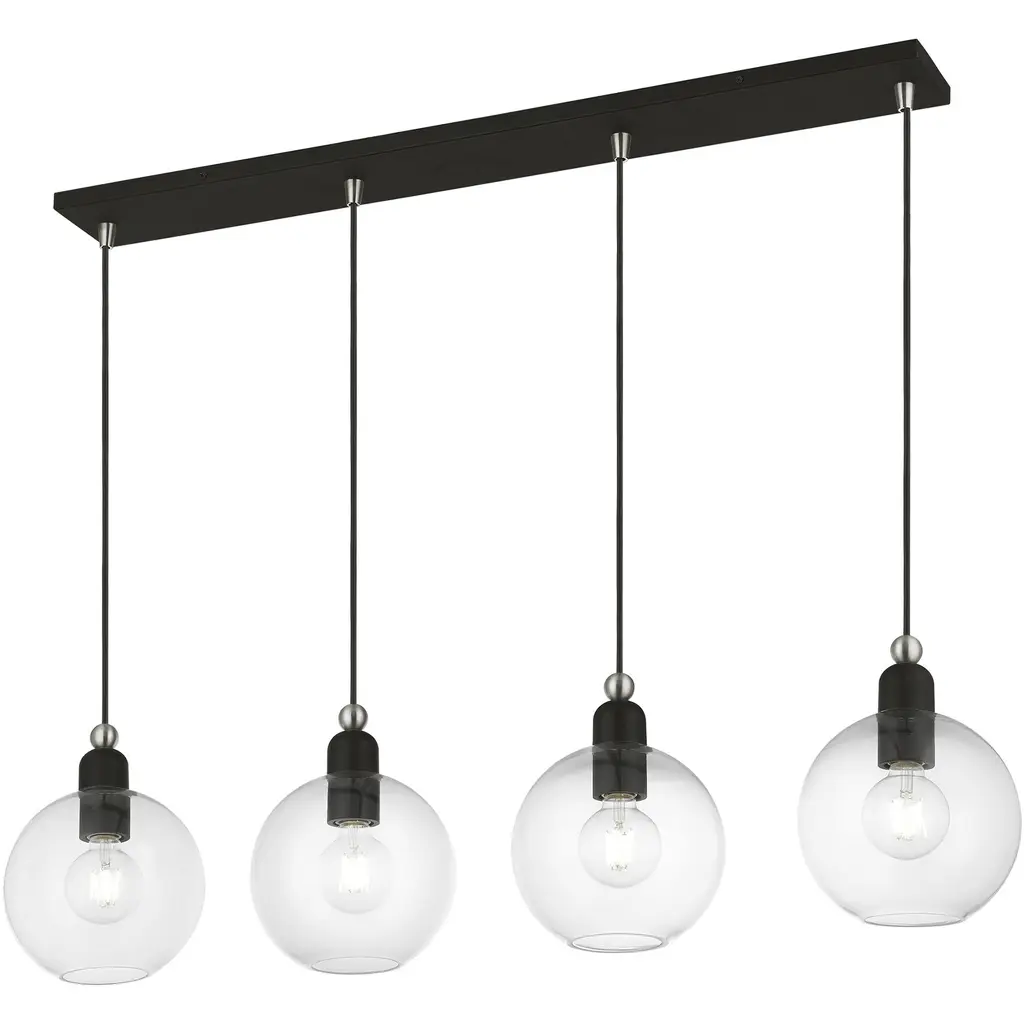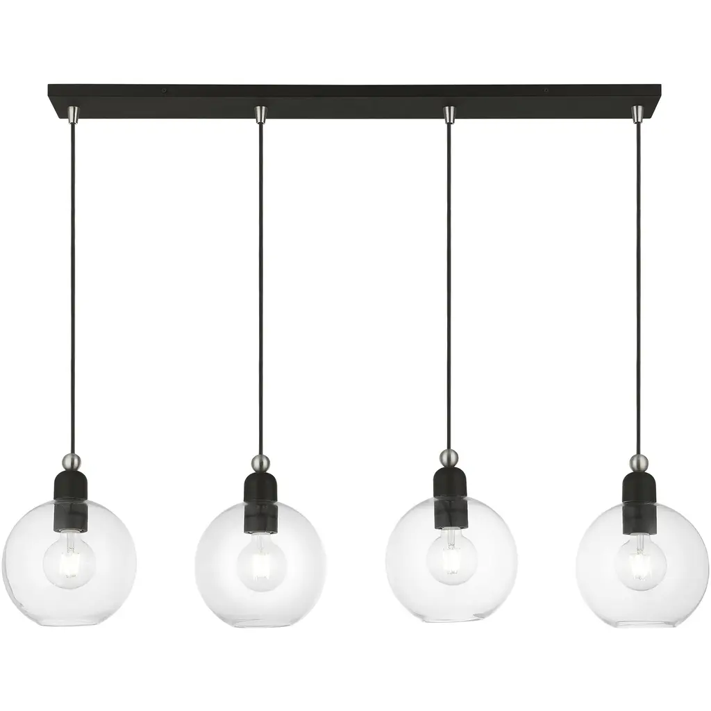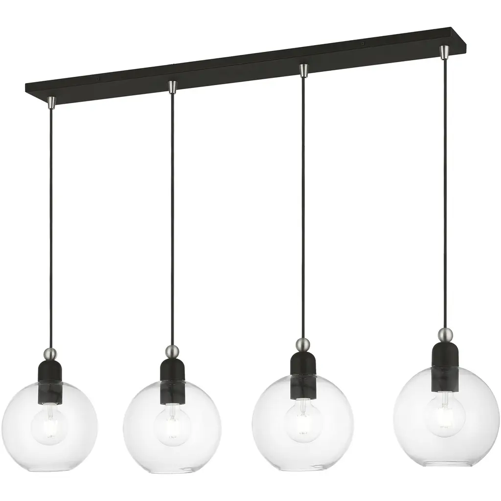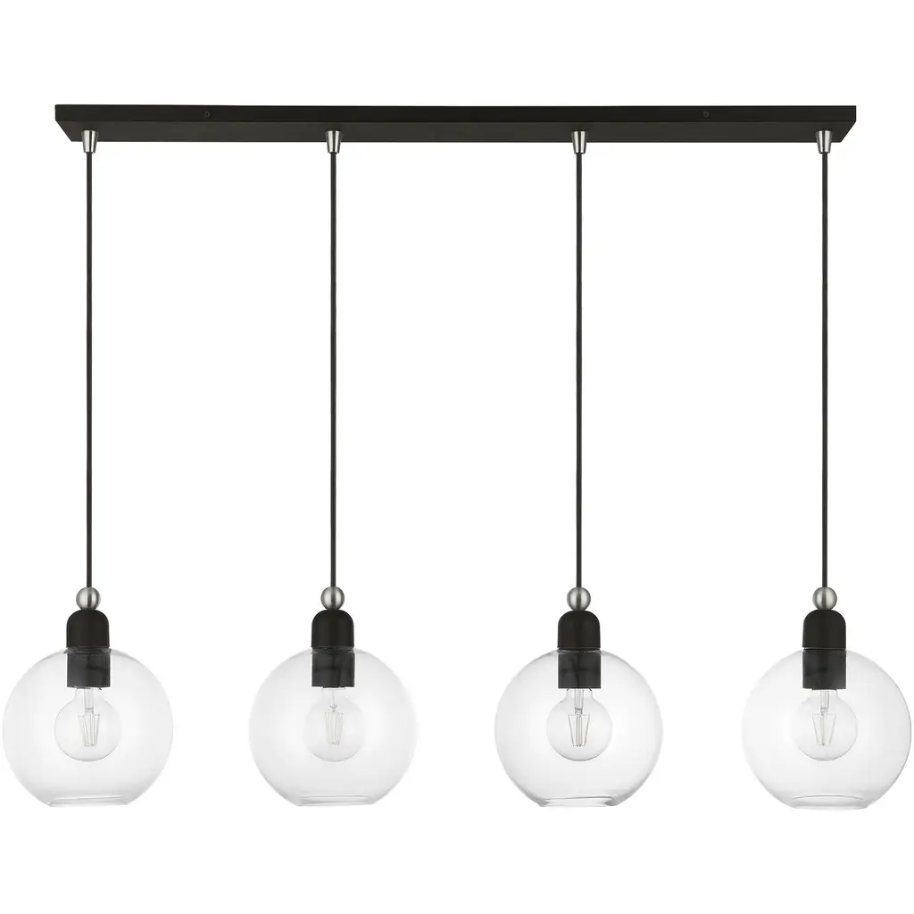 4 Light Black with Brushed Nickel Accents Sphere Linear Chandelier