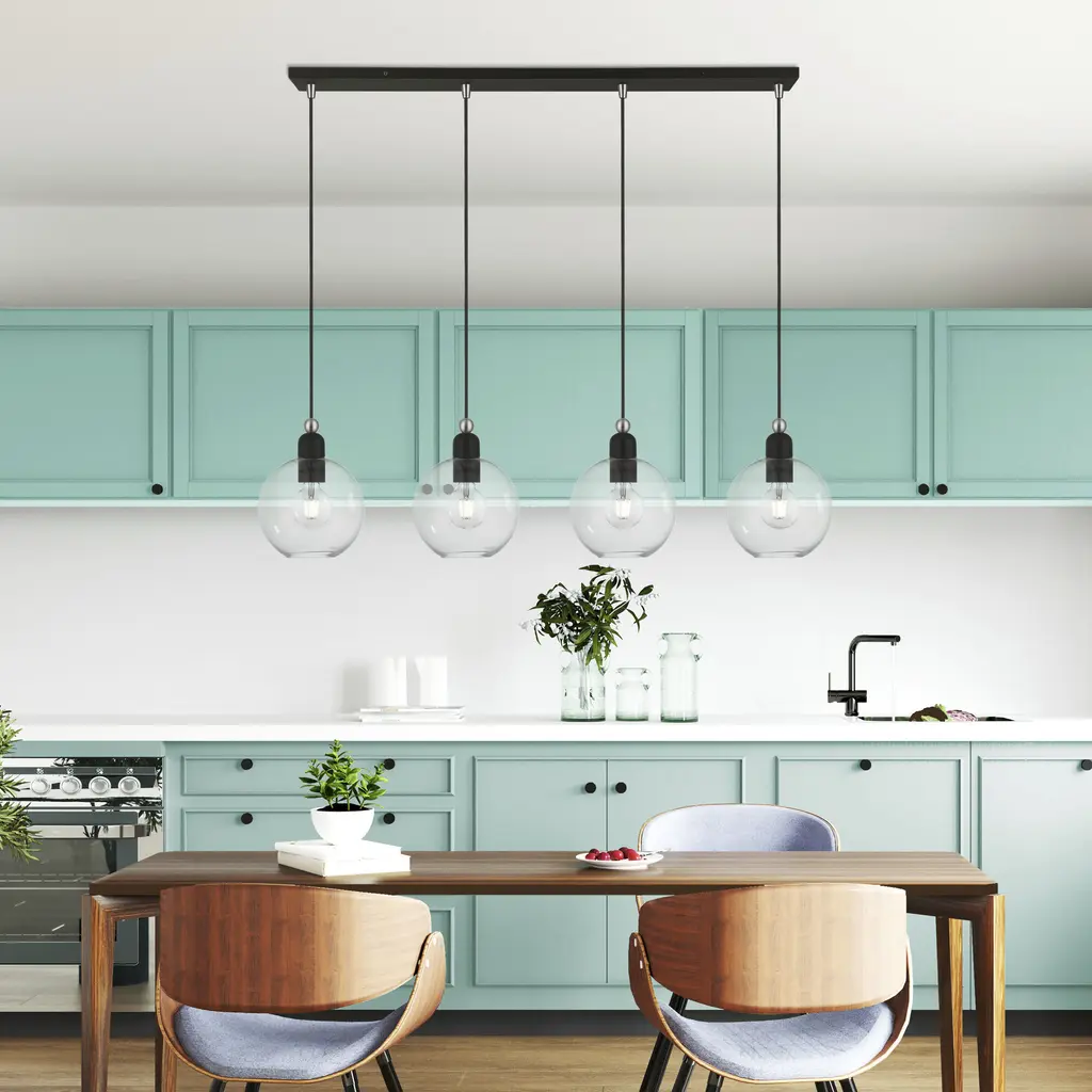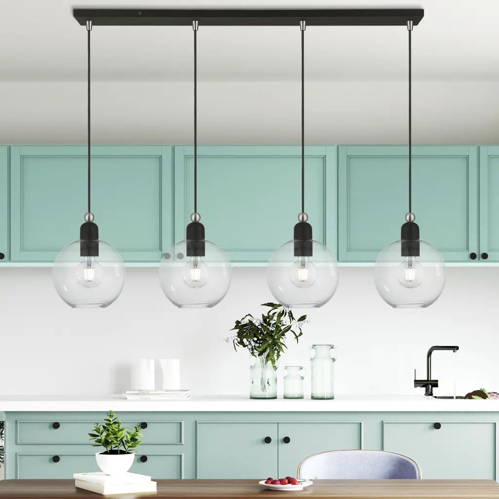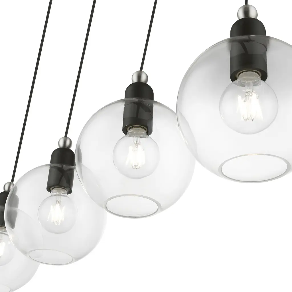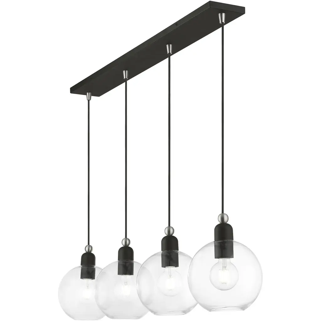 4 Light Black with Brushed Nickel Accents Sphere Linear Chandelier
