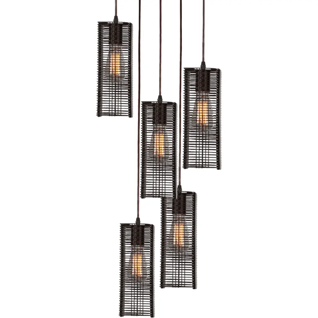 Downtown Mesh 5 Light Graphite Chandelier Ceiling Light, Round Multi-Port
