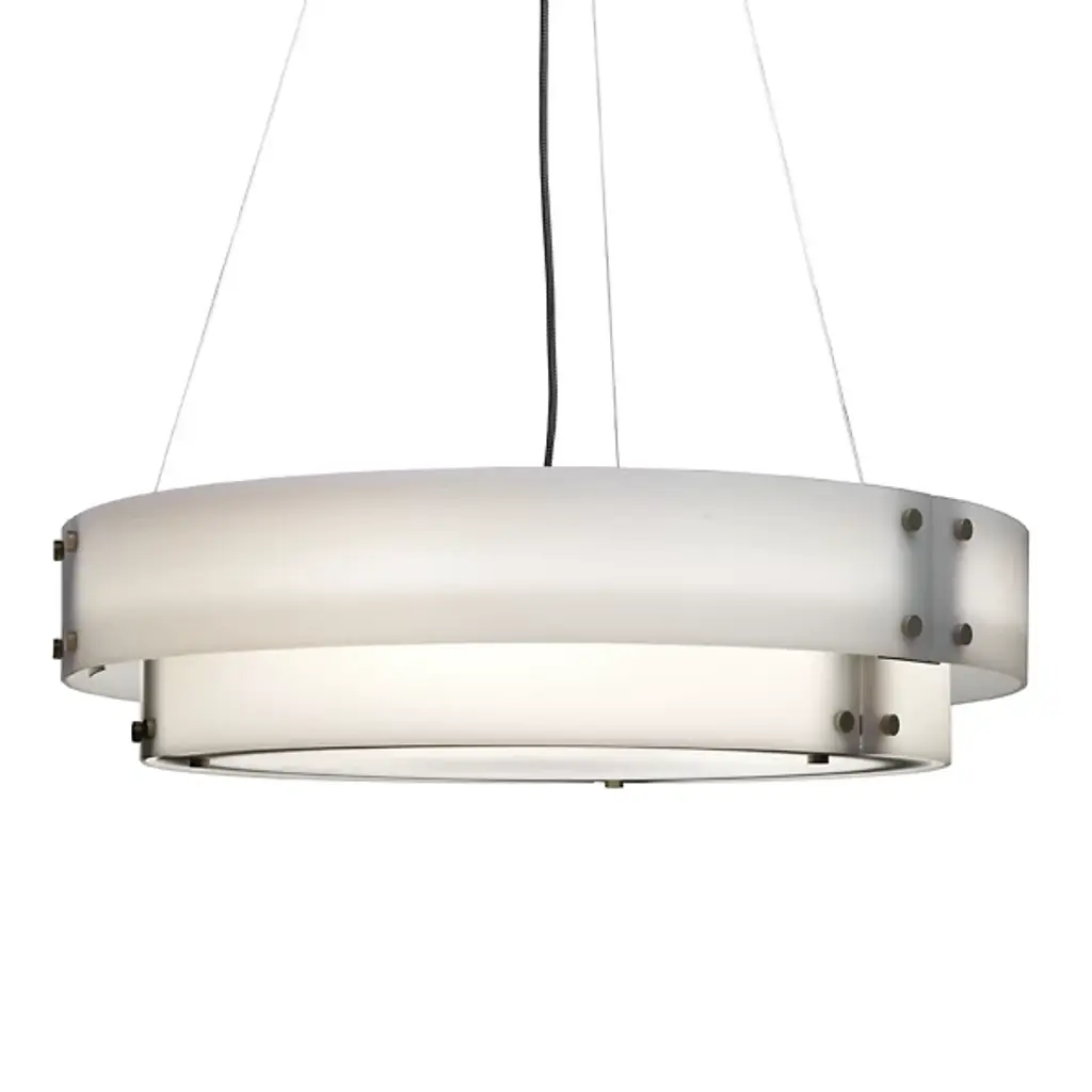 Bring layered refinement to inside spaces with the elegant appeal of the Dozza LED Chandelier from Huxe. Excellent over broad table surfaces or in larger open rooms, the fixture is anchored by a sleek cylindrical canopy that dispatches a series of slender, strong cables to damp-rated LED lamping below, adding energy-efficient illumination to the fixture. A stepped diffuser of opal acrylic sweeps around the lamping’s sides and base, transforming direct light into an even, appealing glow below.