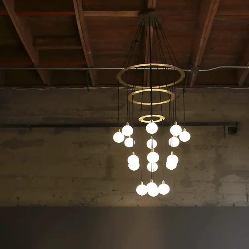 The Drape Circle 18 Chandelier is a luxurious, cascading luminary presented by SkLO. Featuring handblown Czech glass suspended on fabric-wrapped cording, the composition is dramatic and stunning, undoubtedly able to draw in immediate admirers. Each piece of glass is draped on its cord through a ringed bodice for additional structure, while the cord lengths are field adjustable. Allow your imagination to wander when envisioning all the ways Drape could animate your space with enlightened design.