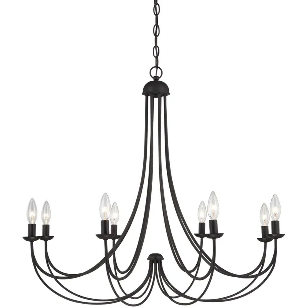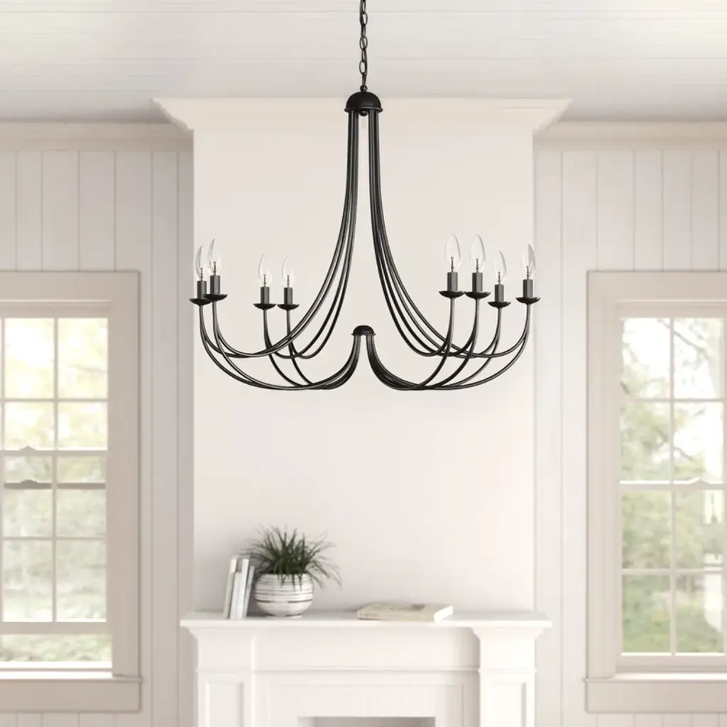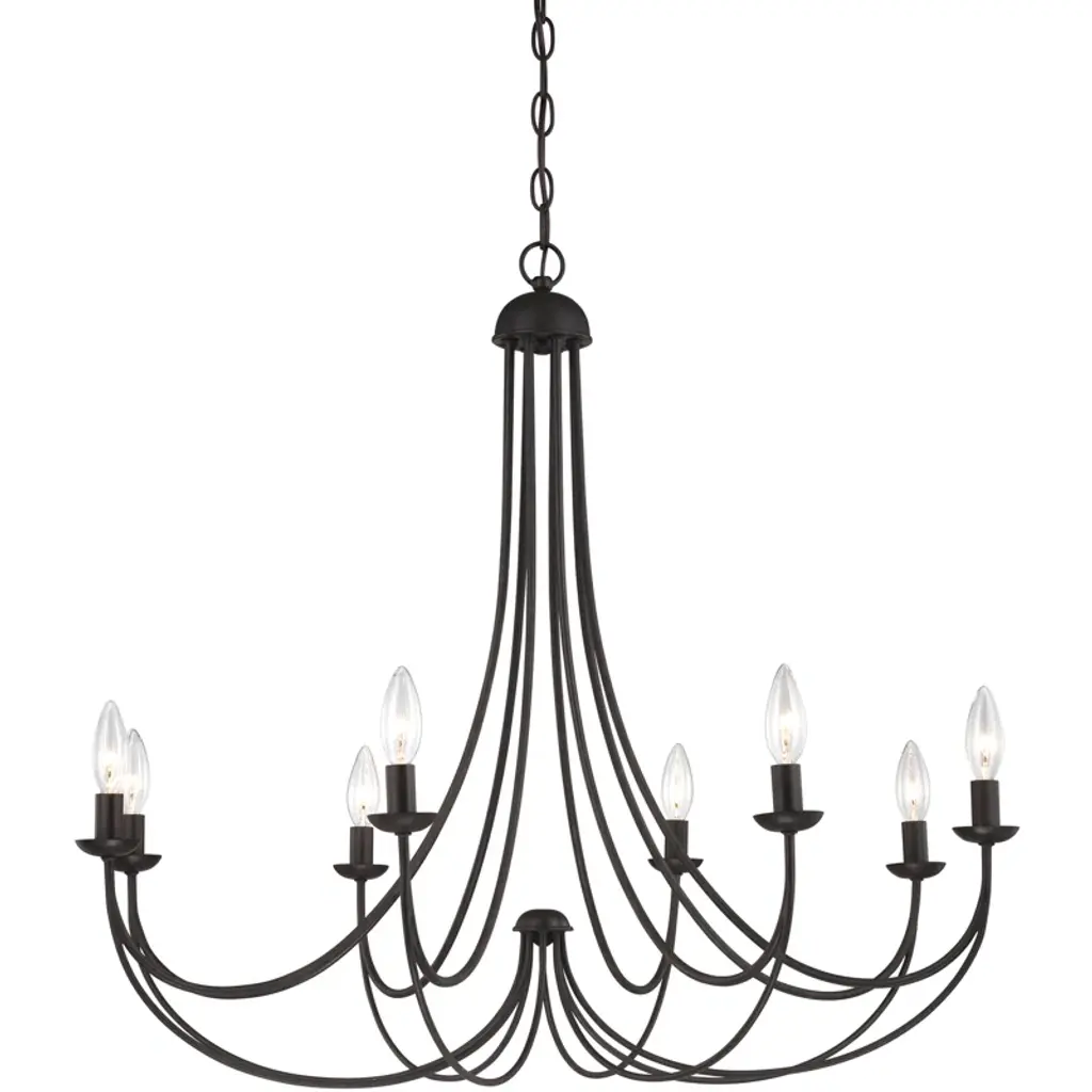 This pared-down take on the classic empire chandelier has the clean lines that let it fit right in with your rustic dining room. It's crafted from metal in a dark bronze finish, with an open silhouette featuring eight candle-style lights around the edges. This 8-light chandelier is compatible with 60W candelabra bulbs, so be sure to keep some on hand when it arrives. It hangs from an adjustable chain that lets you choose just the right height for your ceilings. Plus, it's dimmable, so you can set the right lighting for any occasion.