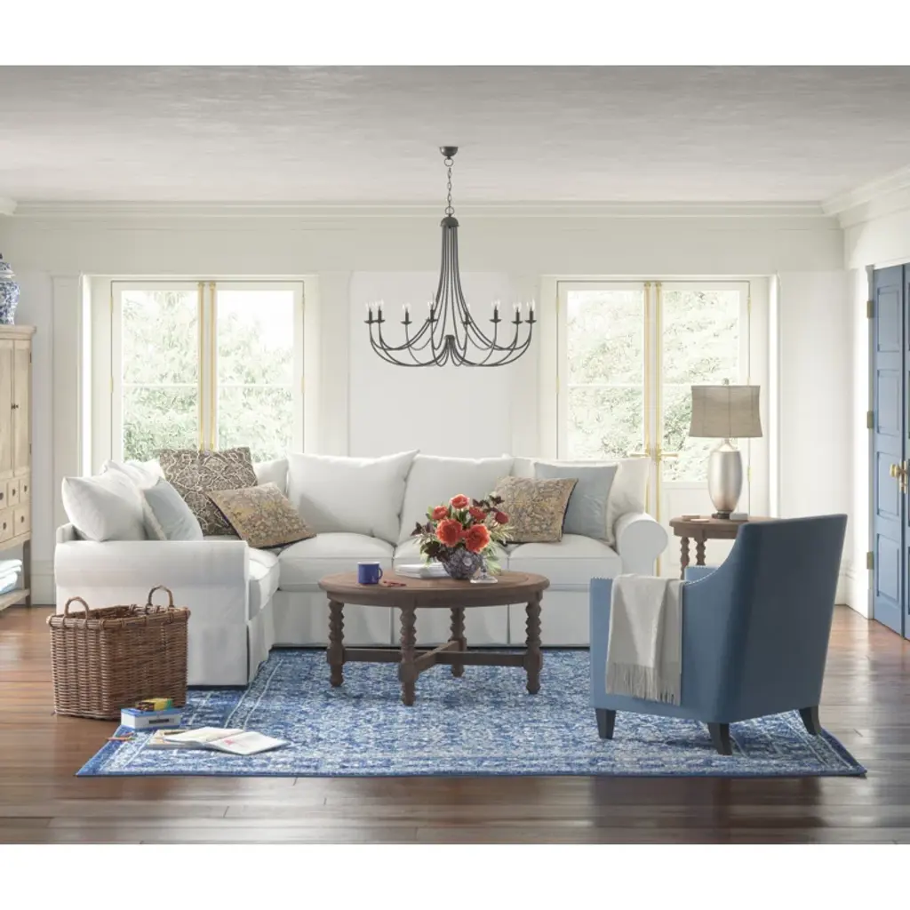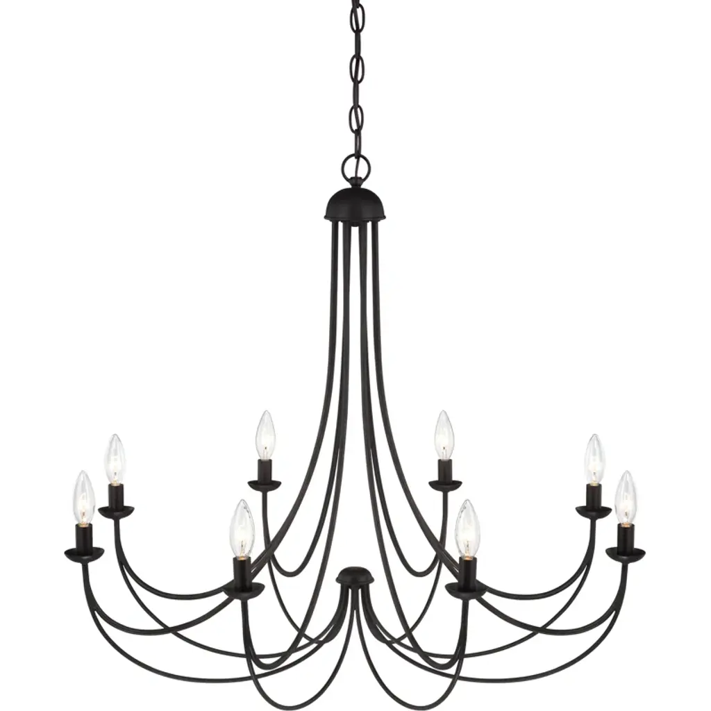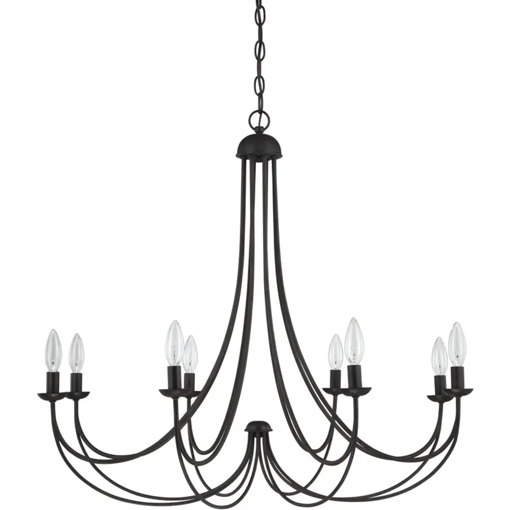 This pared-down take on the classic empire chandelier has the clean lines that let it fit right in with your rustic dining room. It's crafted from metal in a dark bronze finish, with an open silhouette featuring eight candle-style lights around the edges. This 8-light chandelier is compatible with 60W candelabra bulbs, so be sure to keep some on hand when it arrives. It hangs from an adjustable chain that lets you choose just the right height for your ceilings. Plus, it's dimmable, so you can set the right lighting for any occasion.