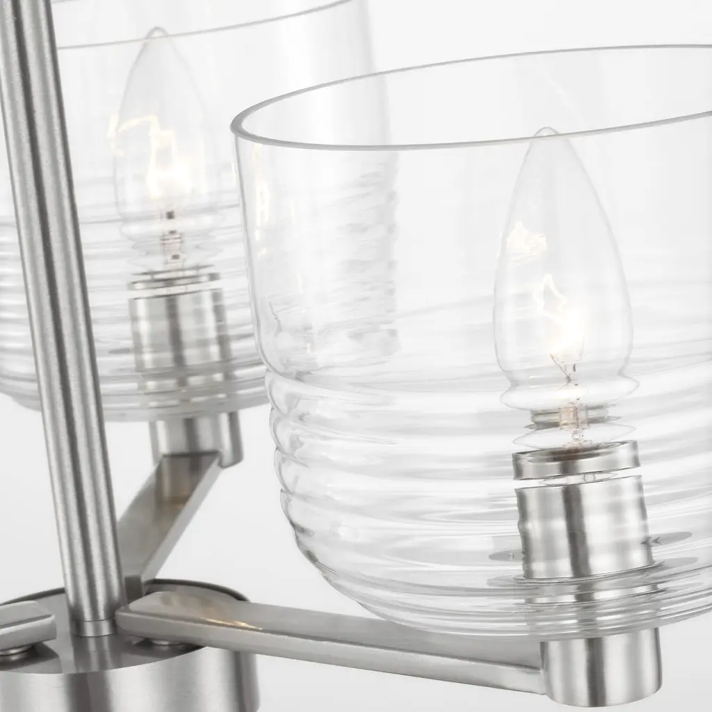Paying homage to decorative gas lighting, the Lochdale fixture by Drew & Jonathan is defined by its clean, simple profile. The ribbed glass shades diffuse light while lending the design a touch of shine. This chandelier will bring an elegant glow to dining rooms, living rooms, foyers and kitchens.