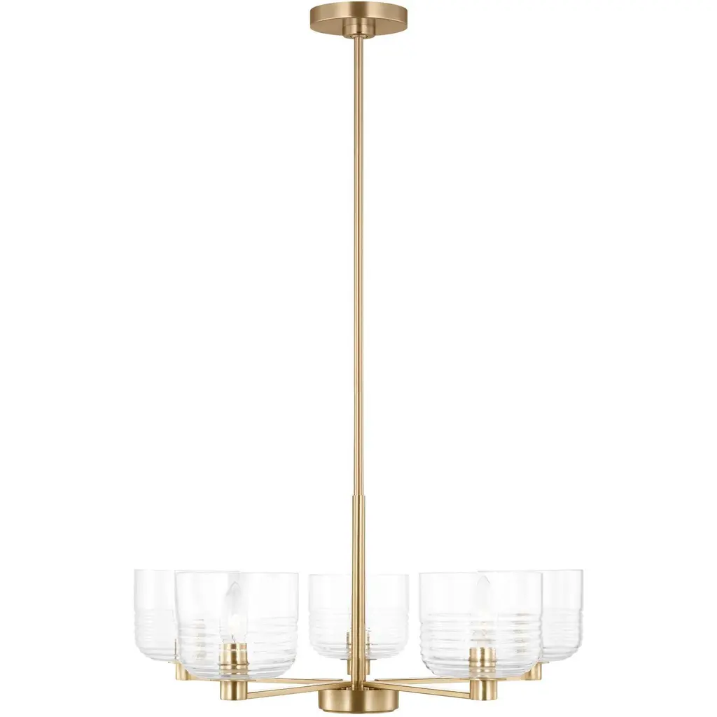 Paying homage to decorative gas lighting, the Lochdale fixture by Drew & Jonathan is defined by its clean, simple profile. The ribbed glass shades diffuse light while lending the design a touch of shine. This chandelier will bring an elegant glow to dining rooms, living rooms, foyers and kitchens.