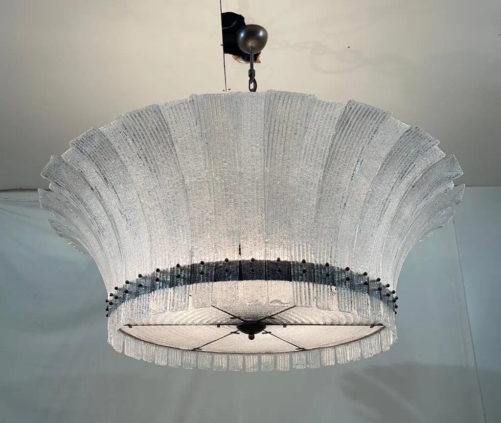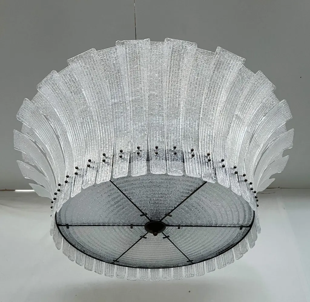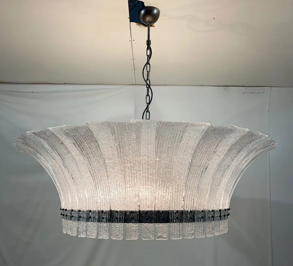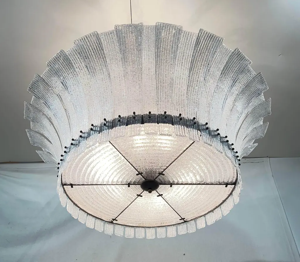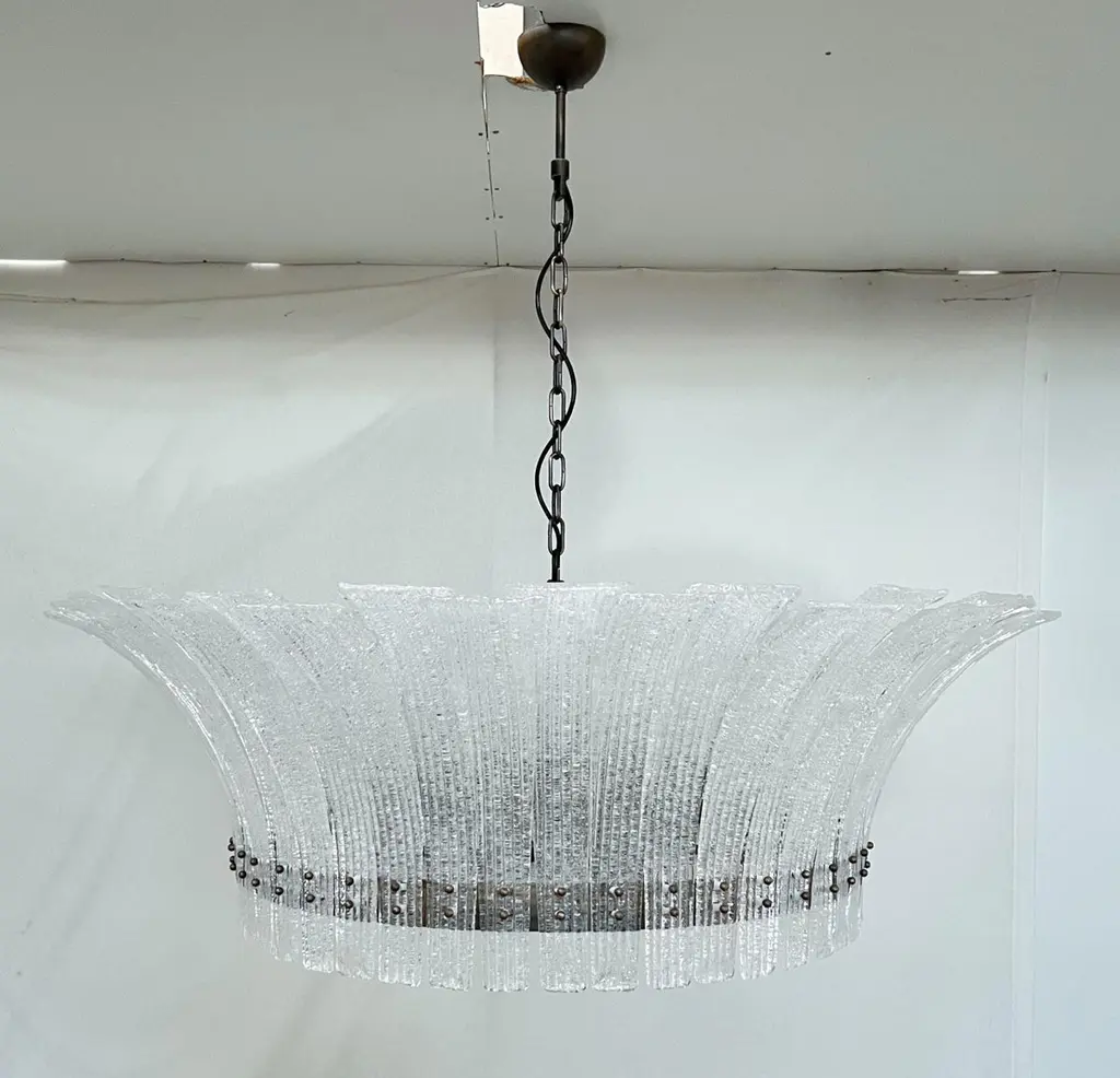 Italian modern chandelier with clear Murano glass leaves hand blown with textured granular effect using Graniglia technique, mounted on bronzed finish frame / Made in Italy12 lights / E26 type or E27 type / max 60W eachMeasures: diameter 47 inches, height 18 inches plus chain and canopyOrder only / this item ships from ItalyOrder Reference #: FABIOLTD C980.