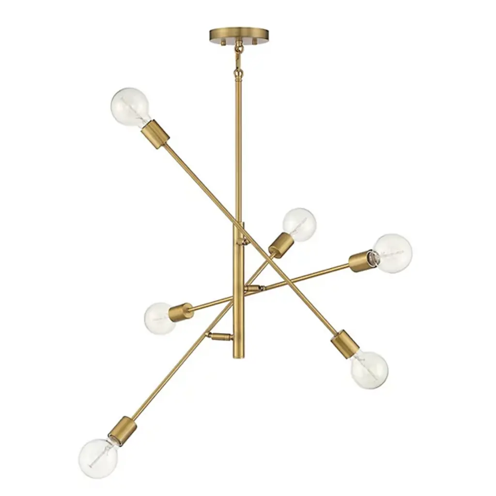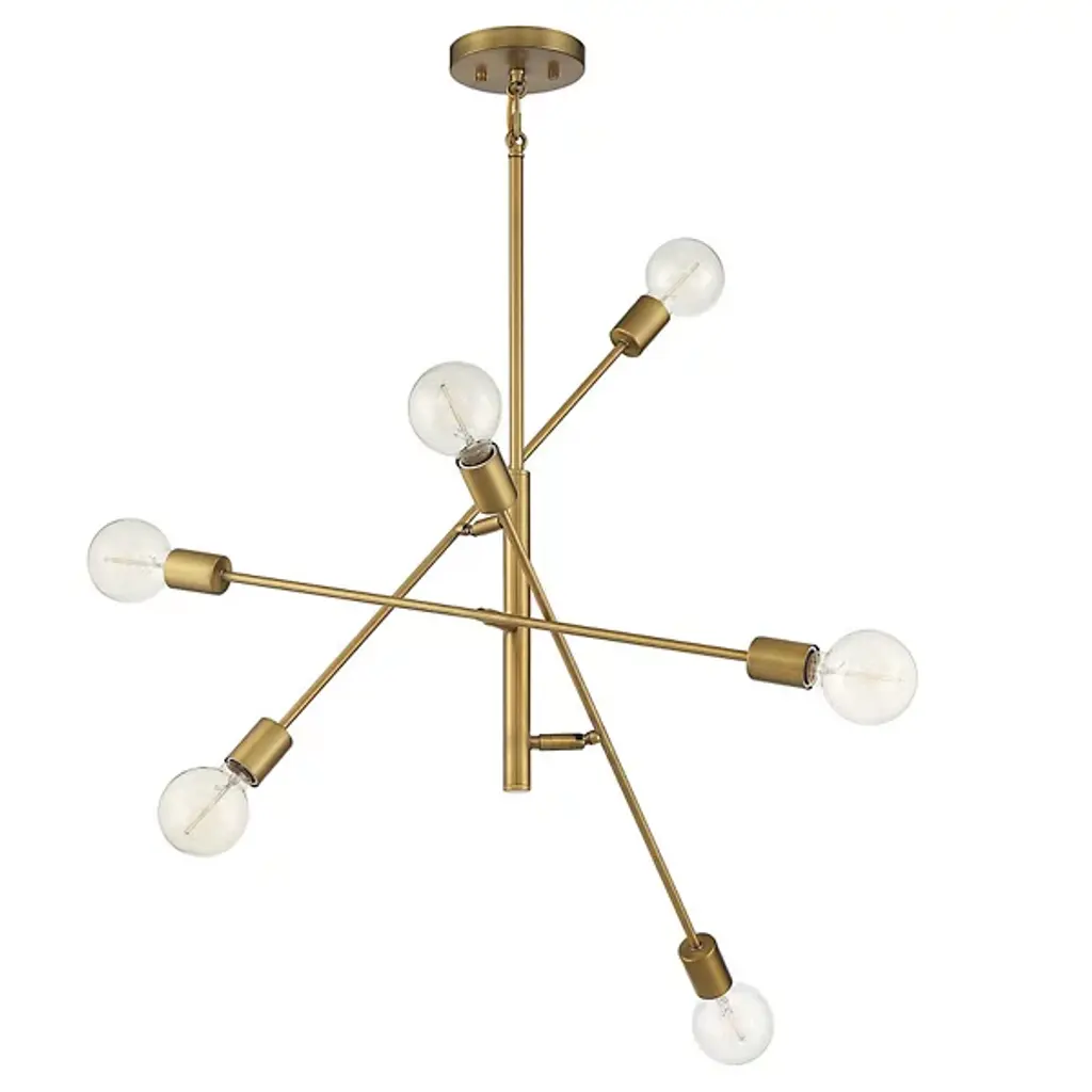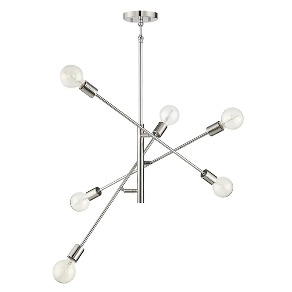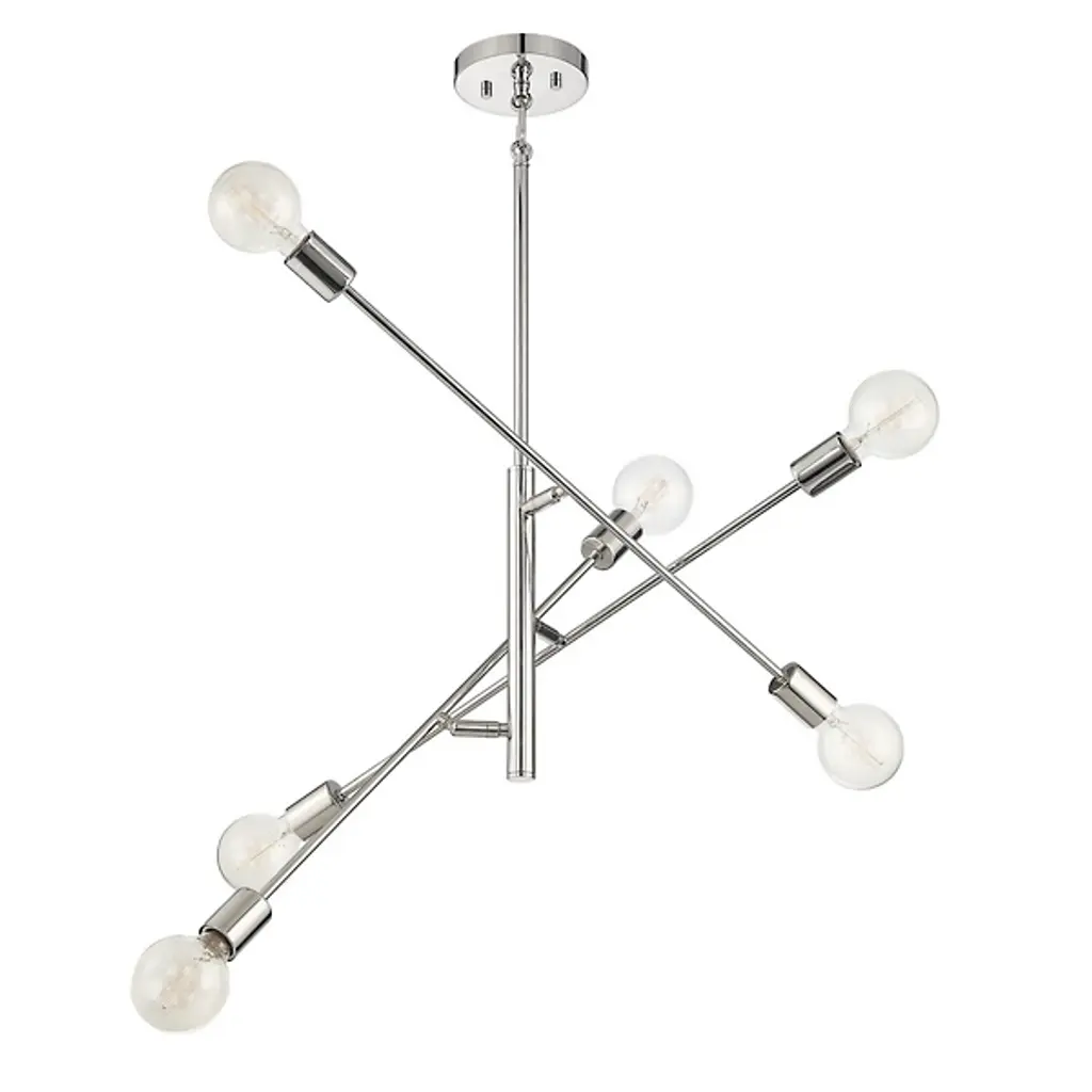 Elevate the light in your modern home with the slim and stylish Duke Chandelier from Alder & Ore. Made of smooth metal throughout, a single slim downrod mounts a series of thin matching rods to various points on its length. The rods are each angled in a precise, different direction and are capped at both ends with a crisp bulb. The light is bright and free, spreading throughout the space in an even and welcoming glow.