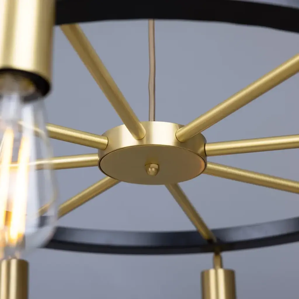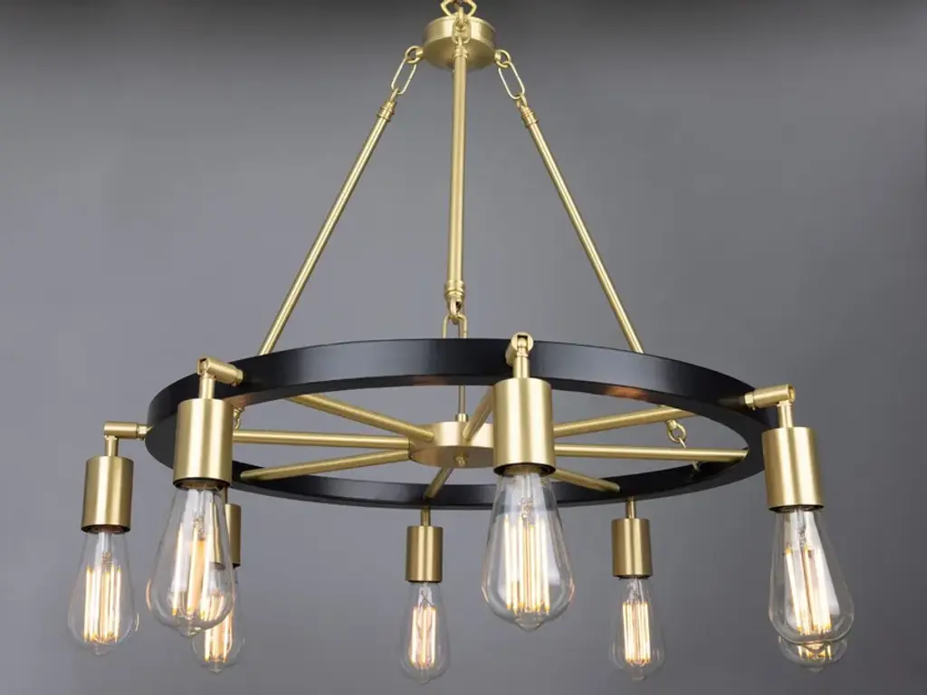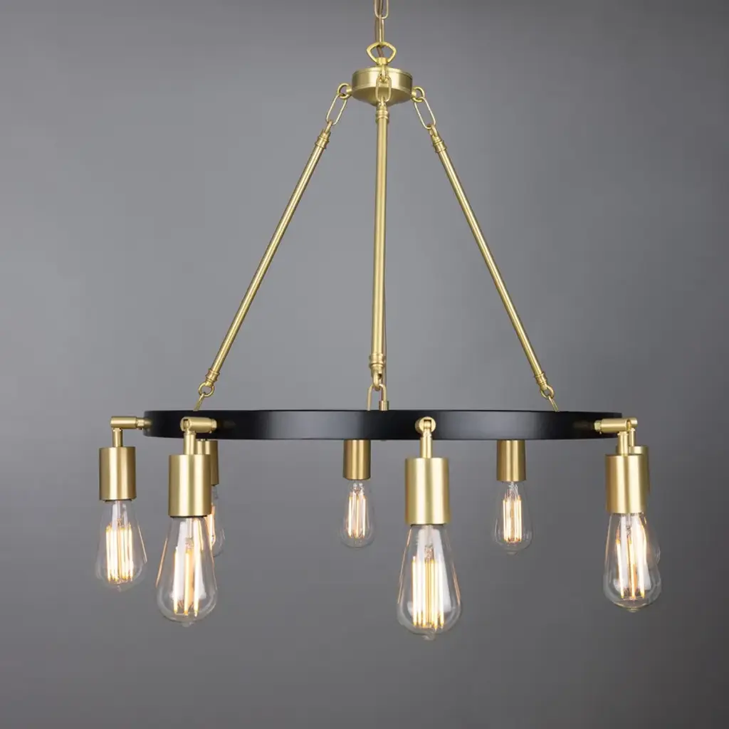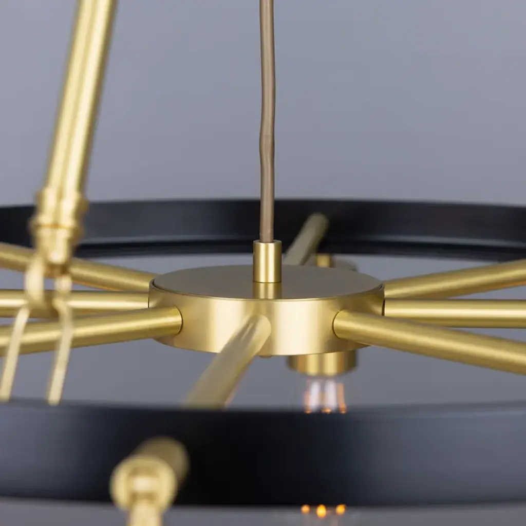 The DULEEK is a modern chandelier featuring eight lamp holders around its outer ring that can be adjusted in any direction. Central to the DULEEK chandelier is its 600mm black steel ring. Eight brass sleeves radiate from the centre of the DULEEK chandelier and pass through and beyond its outer ring. Each brass sleeve holds a brass lamp holder on a 360° swivel joint allowing it to be positioned in any direction.The chandelier's black steel ring is suspended from three brass rods and chain attached to the supplied ceiling rose above. The DULEEKchandelier is available in antique brass, antique silver, polished brass and satin brass. Bulbs are sold separately.Max Wattage: 60WLampholder: E27 | Plastic | ES | Edison Screw | 2 Core CableVoltage: 220V/240VIP Rating: IP20Protection Class: Class I