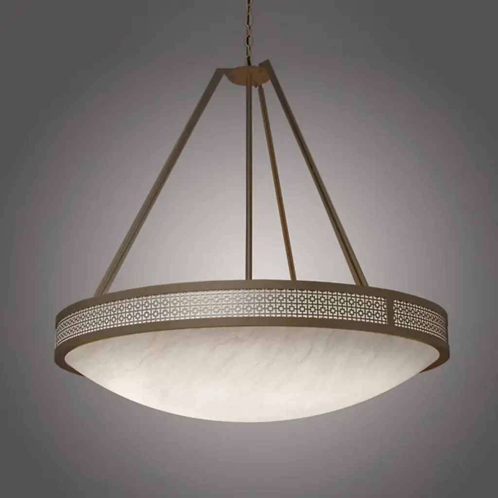 The Duo Chandelier by Ultralights lends a lovely look to spaces needing a layer of illumination. Suspended by a group of stems, a beautiful curved shade is complemented by a perforated metal band that runs around its edge, for a simple yet sophisticated look. Pairing a smooth shade with the defining detail of a thoughtfully textured frame, the composition of this contemporary chandelier makes a confident statement in the spaces it brightens.