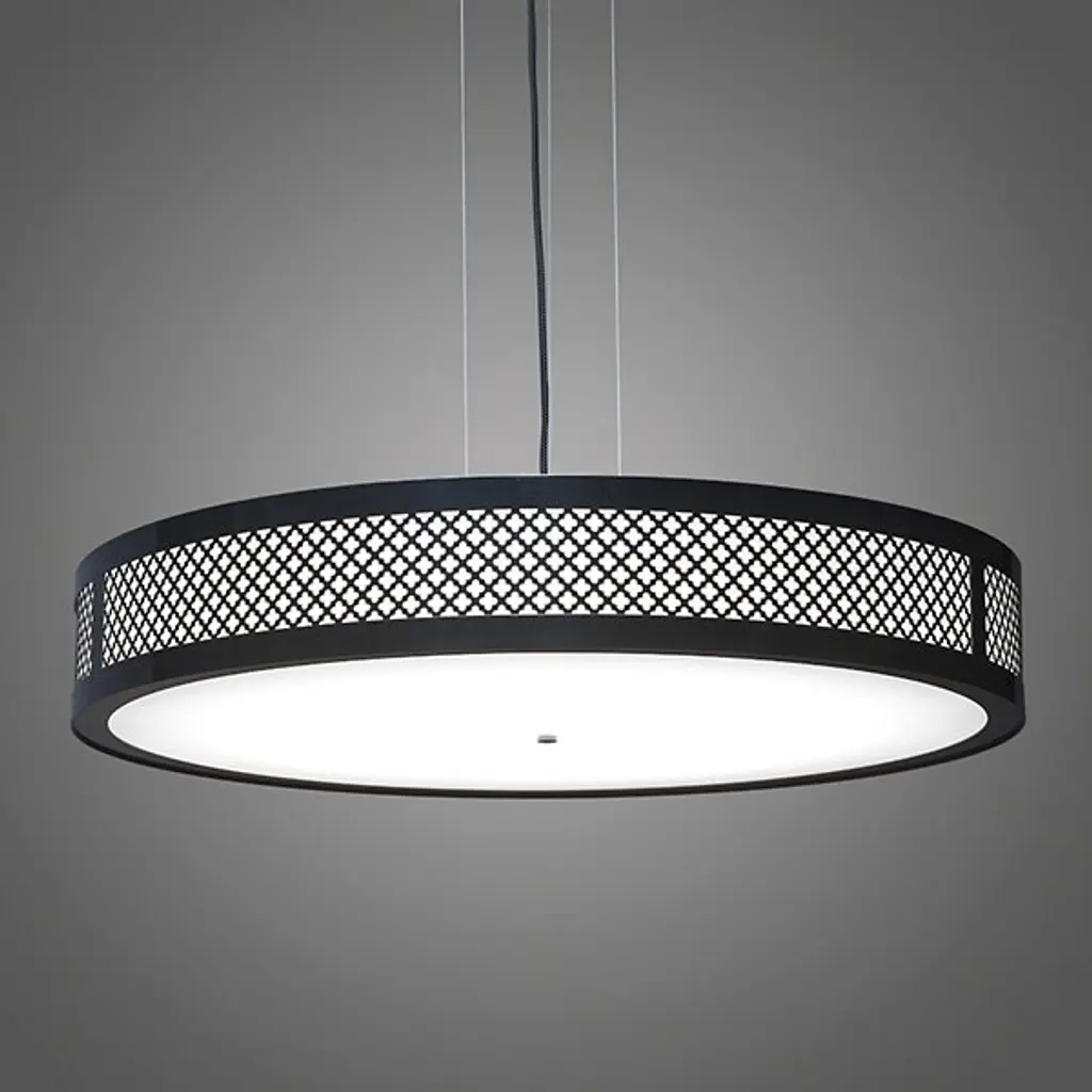 Every inch an expression of true craftsmanship. Tucson-based Ultralights delivers an elegant and refined piece in the Duo LED Chandelier. It hangs with a graceful quality overhead with a slender wire and fine cables. Made from start to finish by Ultralights, its metal housing evokes classic ornamentation as an intricate pattering wraps across its sides. Giving great contrast to the pattern, an acrylic diffuser serves as a clean, milky background. A cutting-edge LED array filters through the pattern for a graphic silhouette; it also passes through the bottom acrylic plate as a spacious breadth of light.