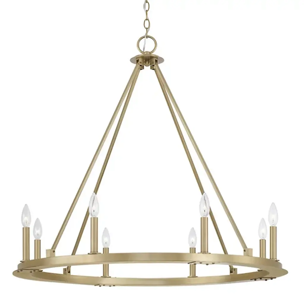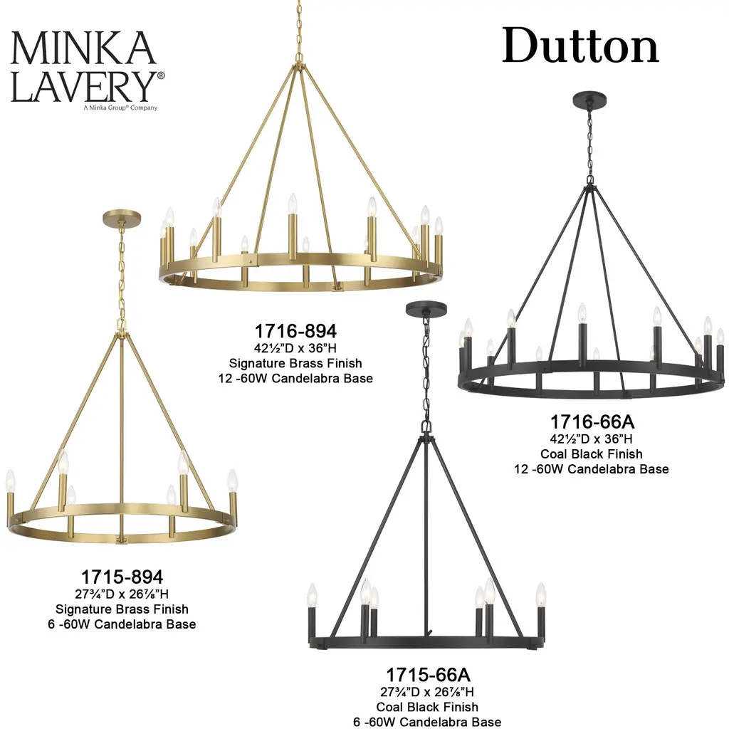 This 12 light Chandelier from the Dutton collection by Minka-Lavery will enhance your home with a perfect mix of form and function. The features include a Signature Brass finish applied by experts. This item qualifies for free shipping!