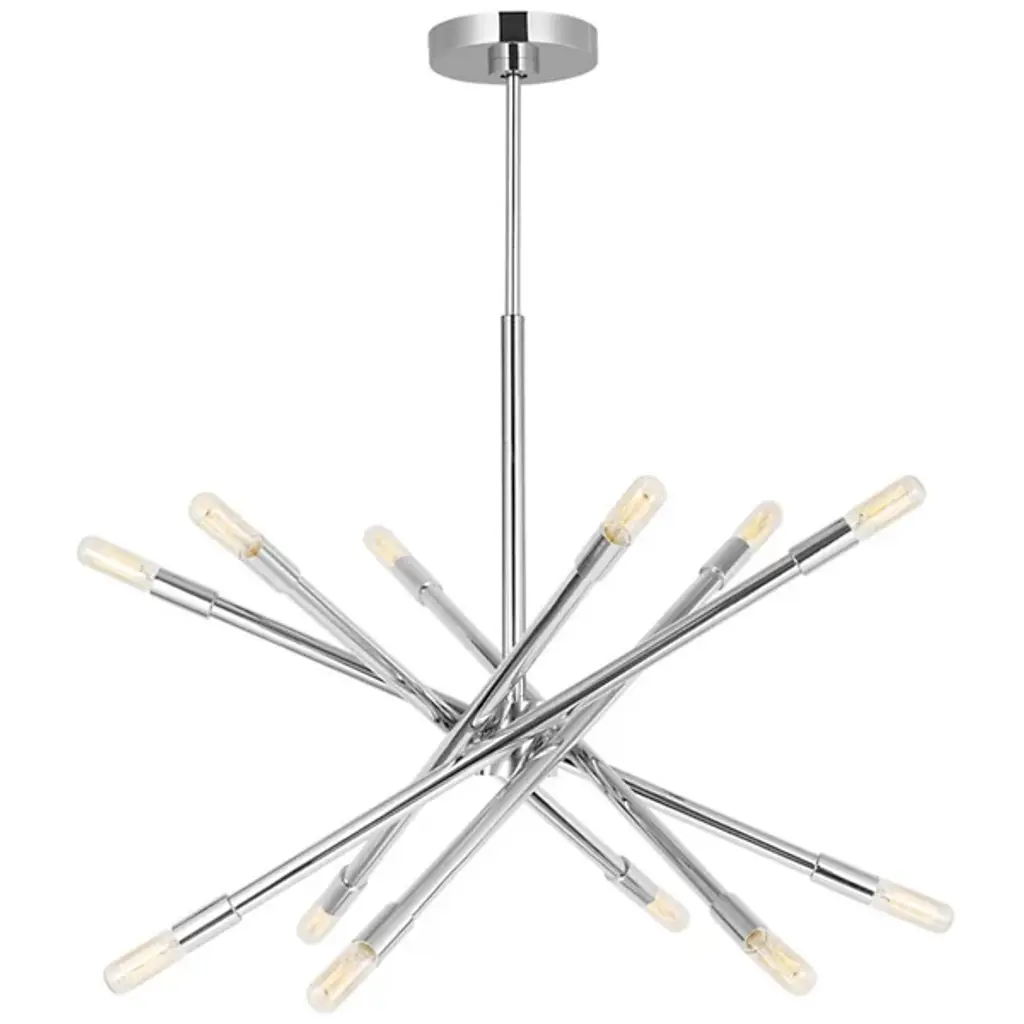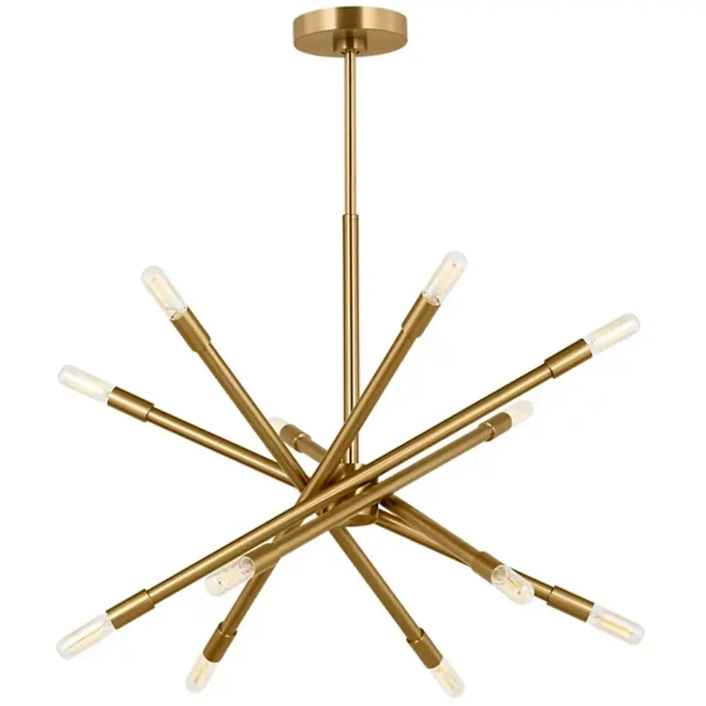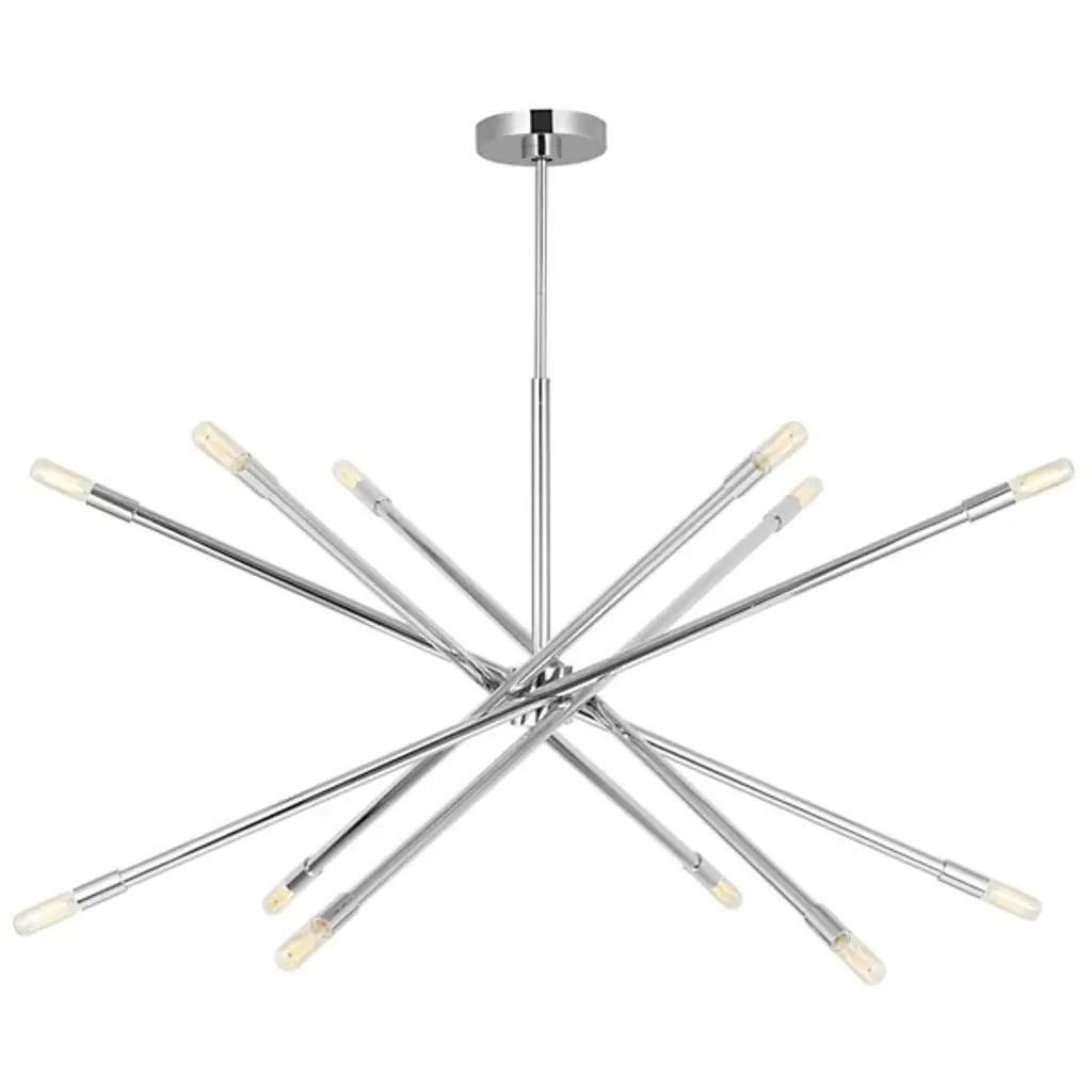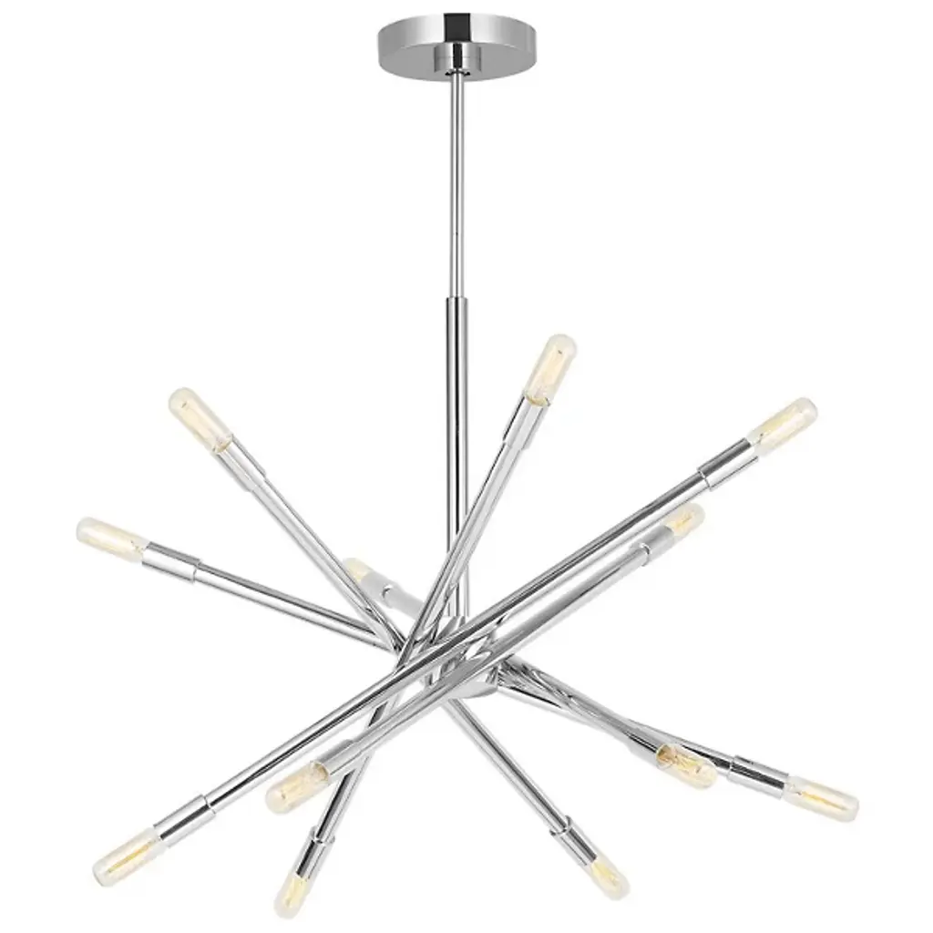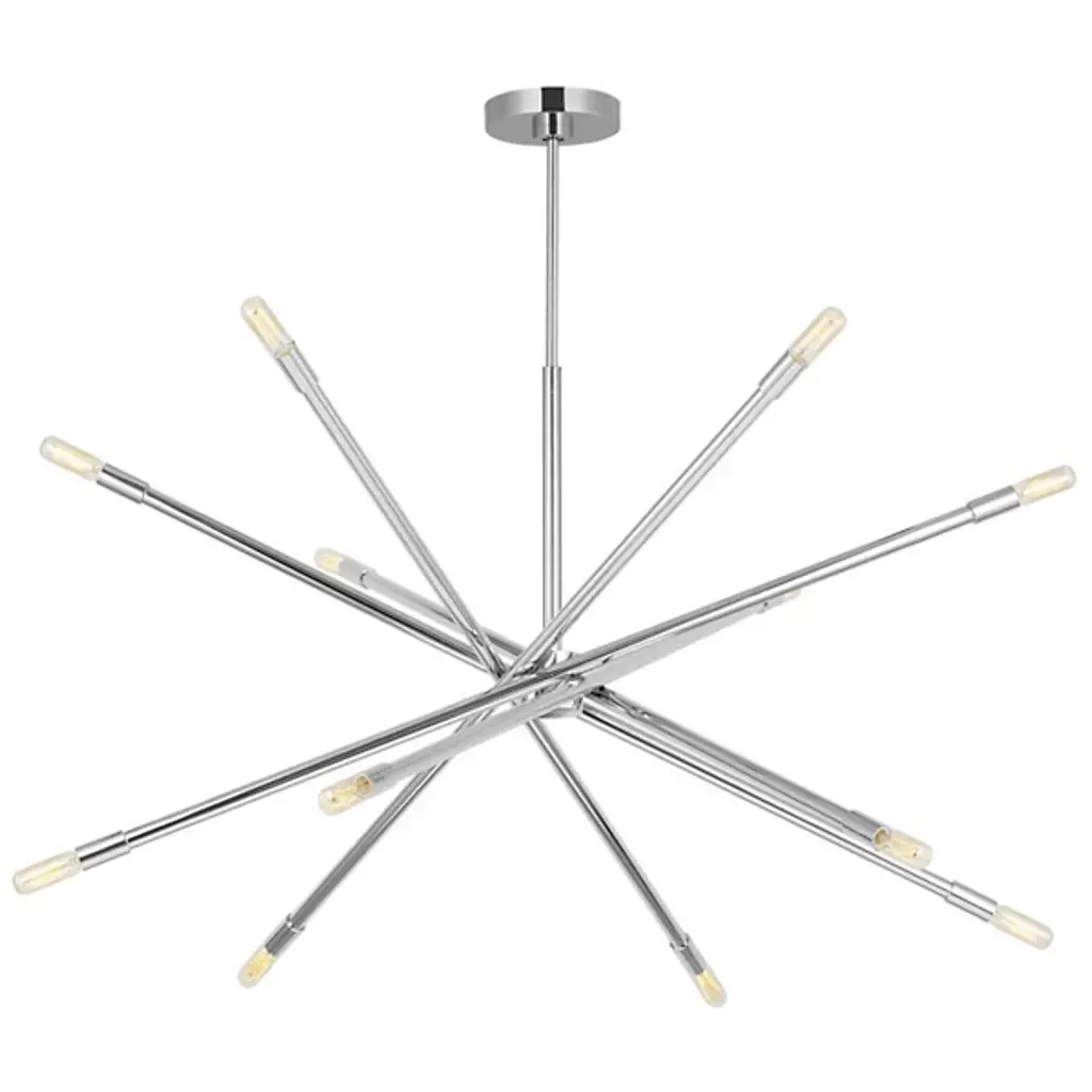 Give your indoor space a transitional look with the Eastyn Chandelier by Visual Comfort Studio. A geometric design lends elegance to this contemporary sputnik sphere chandelier. LED light emanates from both ends of slender steel rods, which intersect while suspended in midair. This furnishment is secured by a disc-shaped canopy at your ceiling.