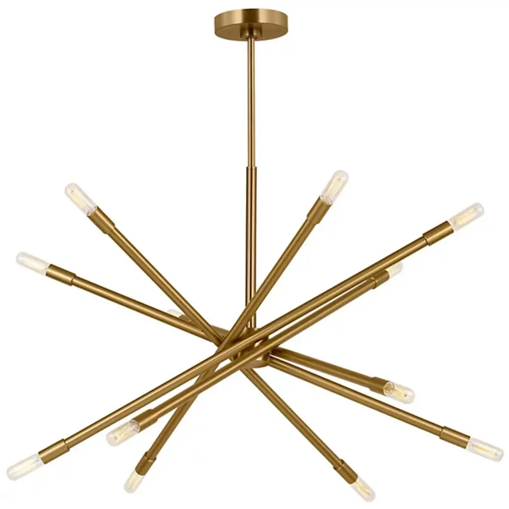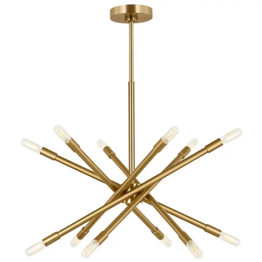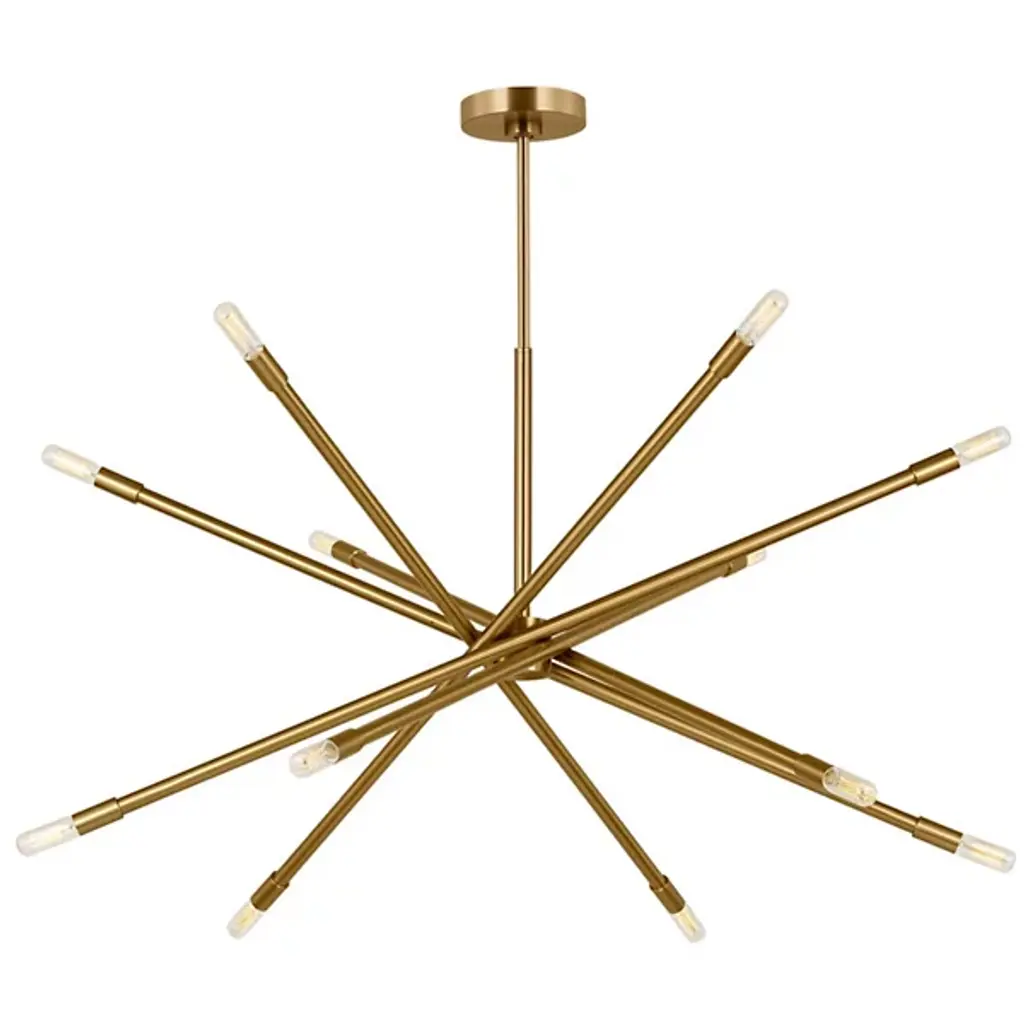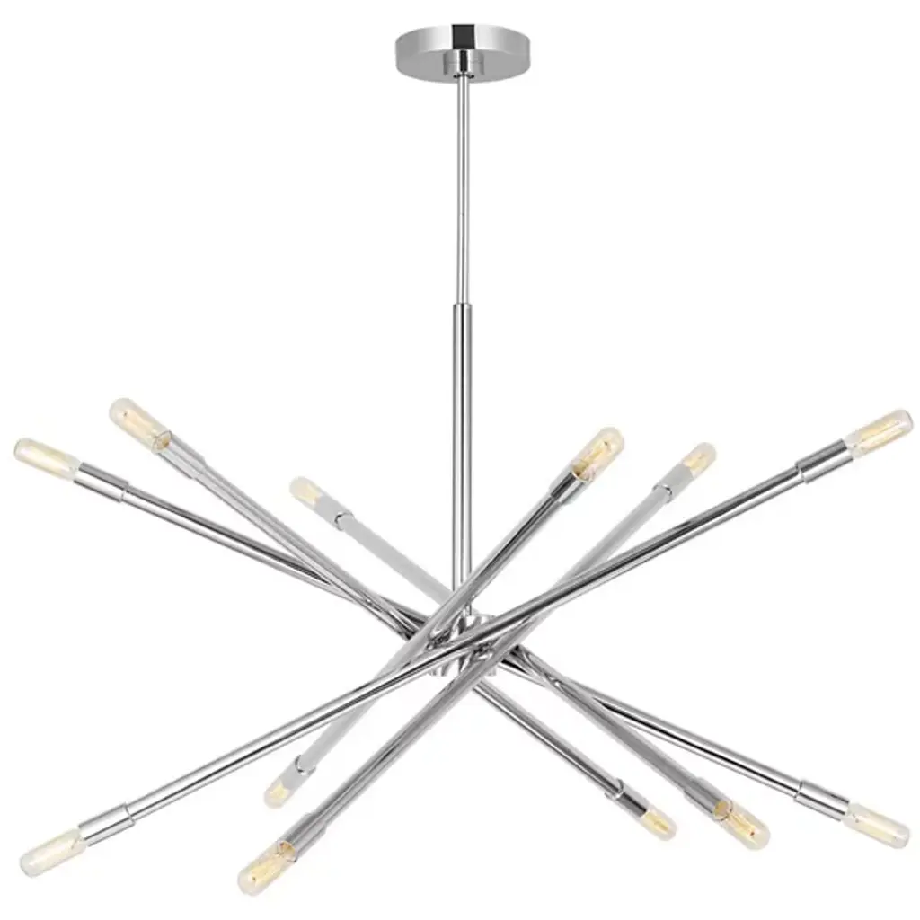 Give your indoor space a transitional look with the Eastyn Chandelier by Visual Comfort Studio. A geometric design lends elegance to this contemporary sputnik sphere chandelier. LED light emanates from both ends of slender steel rods, which intersect while suspended in midair. This furnishment is secured by a disc-shaped canopy at your ceiling.