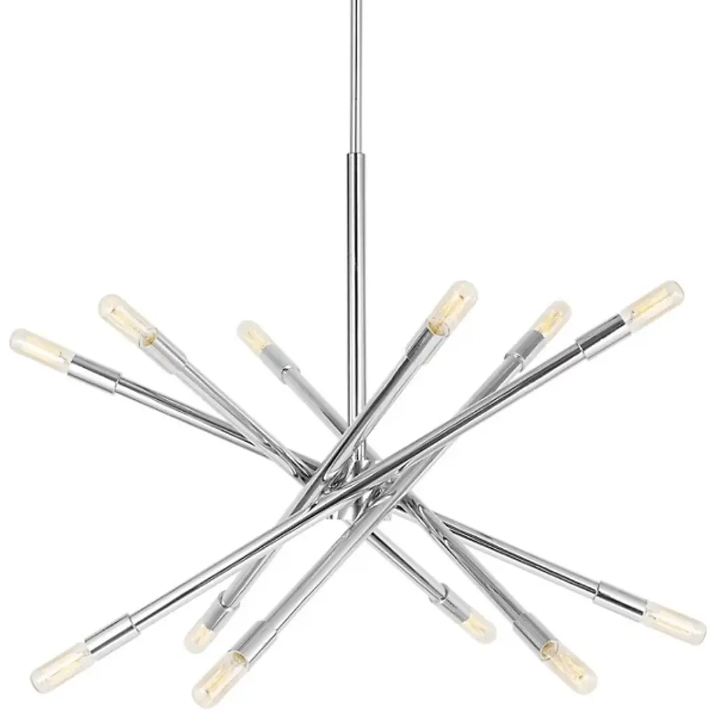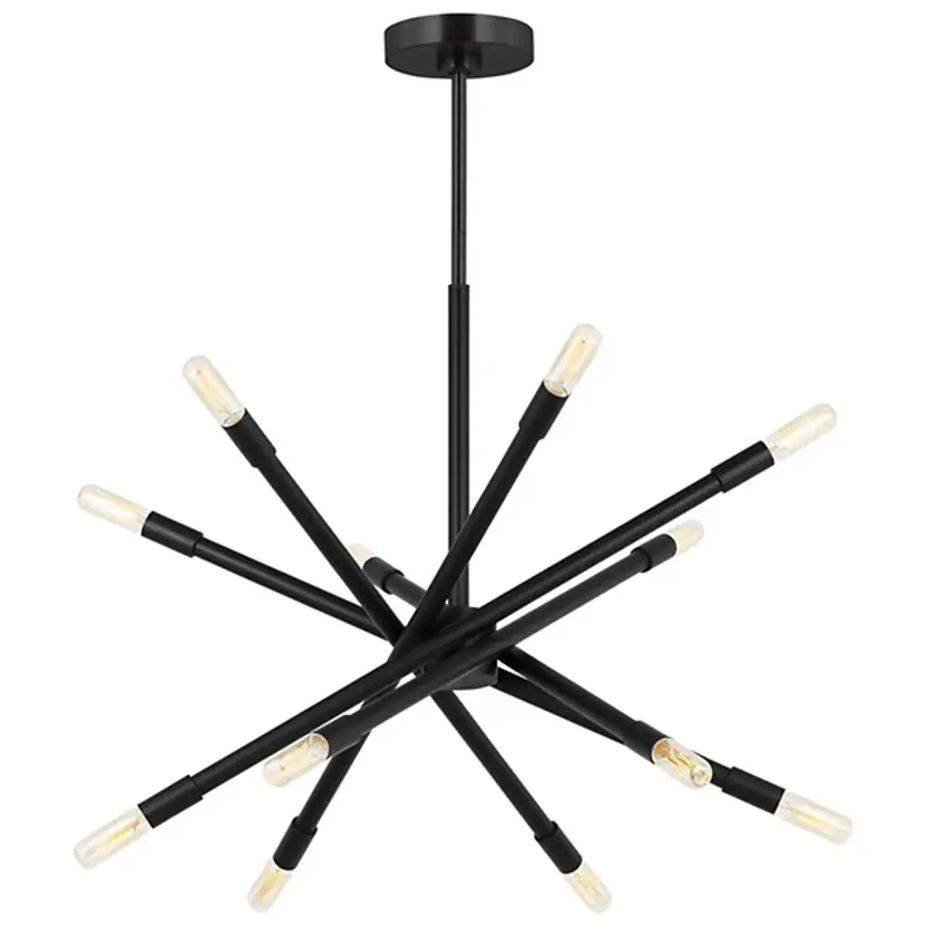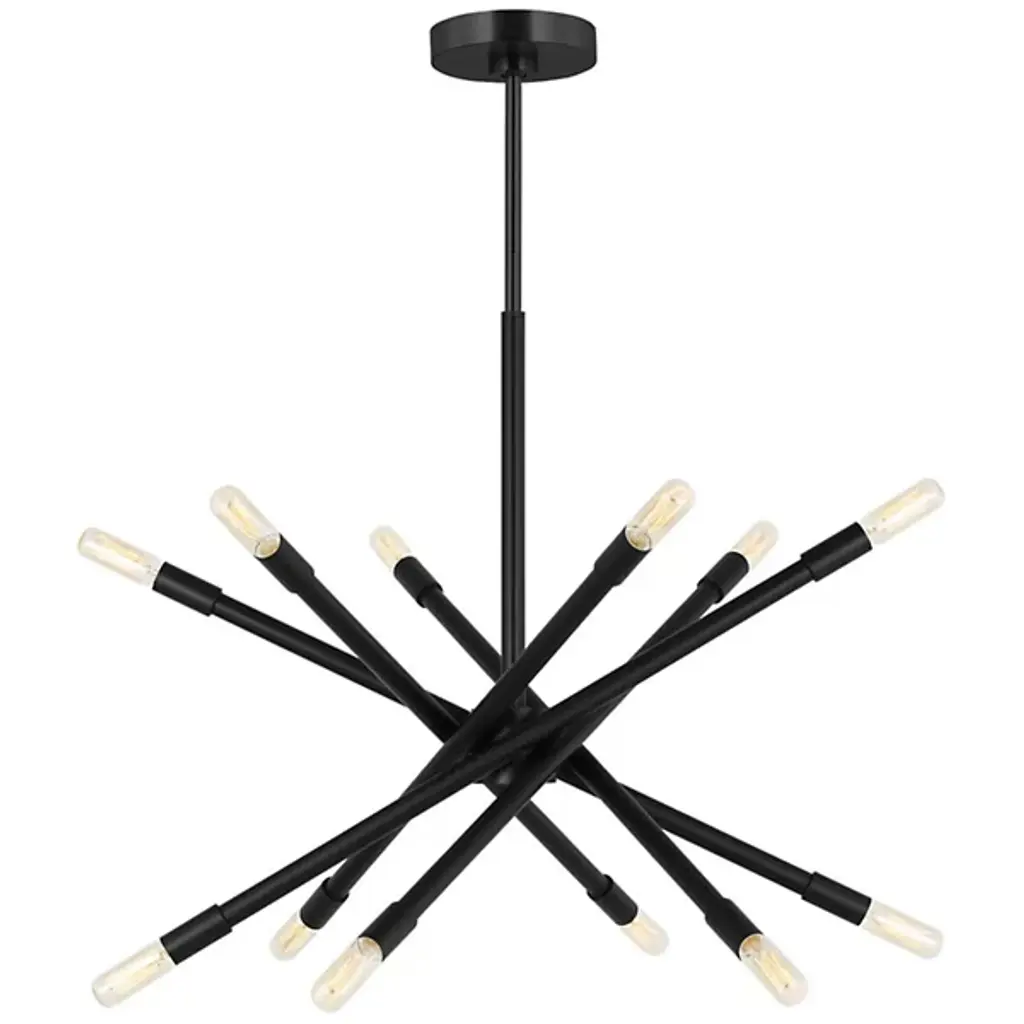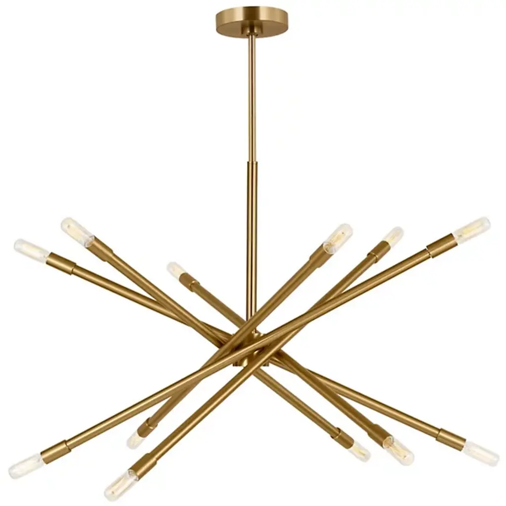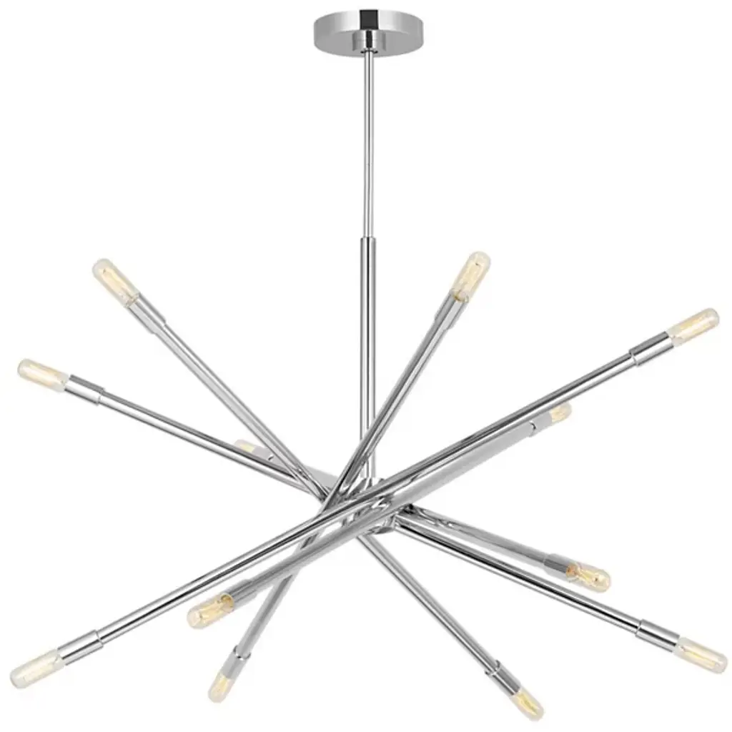 Give your indoor space a transitional look with the Eastyn Chandelier by Visual Comfort Studio. A geometric design lends elegance to this contemporary sputnik sphere chandelier. LED light emanates from both ends of slender steel rods, which intersect while suspended in midair. This furnishment is secured by a disc-shaped canopy at your ceiling.