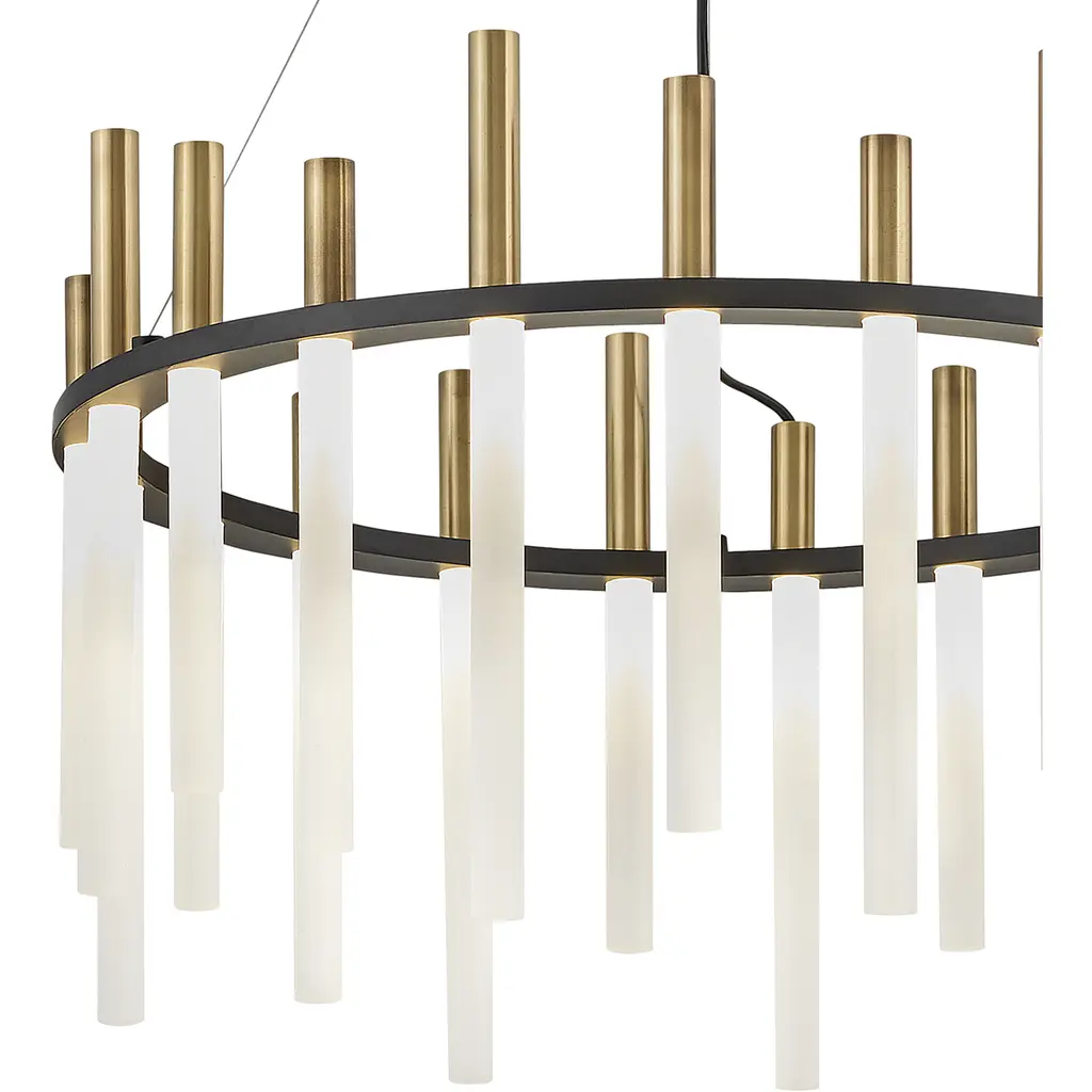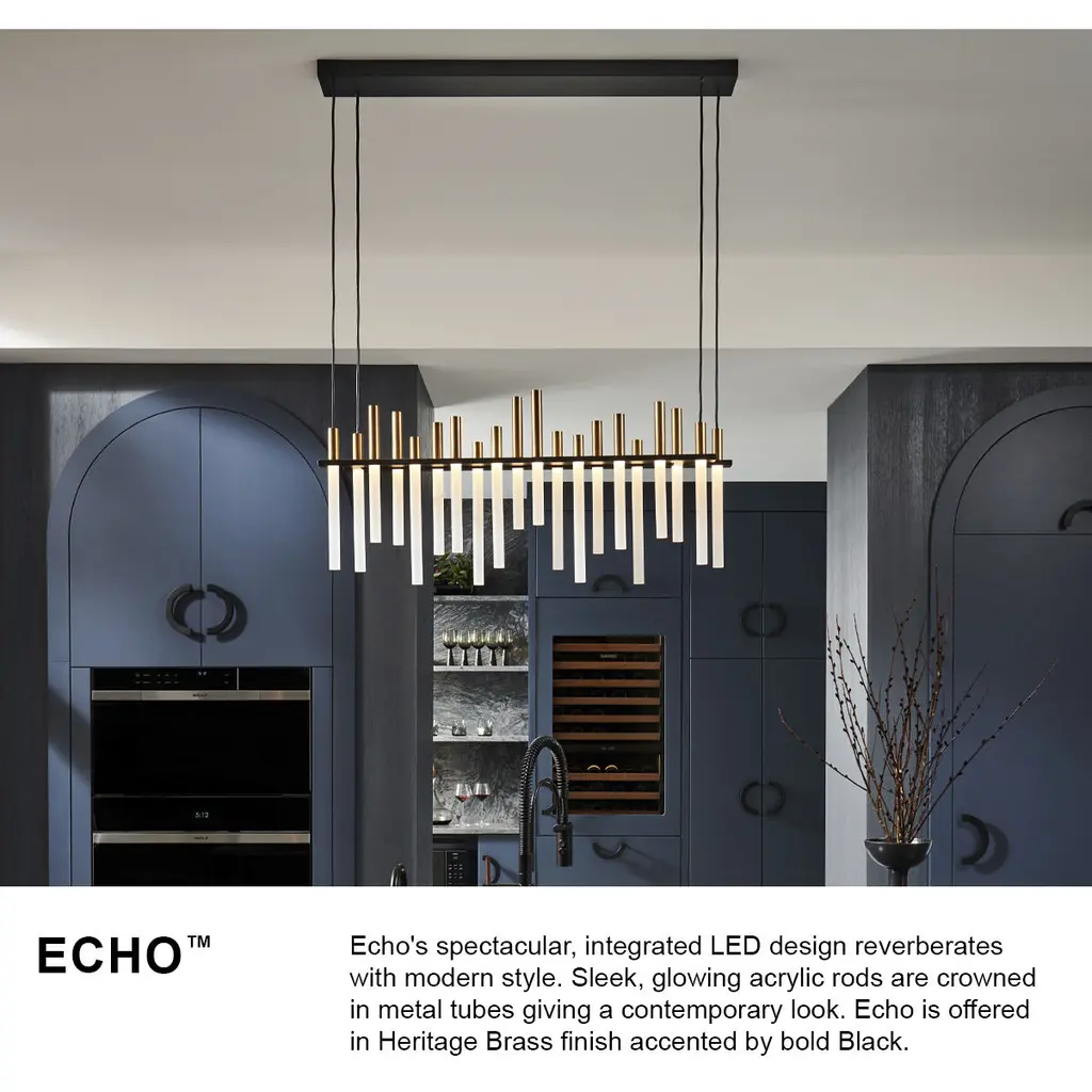 Echo's spectacular, integrated LED design reverberates with modern style. Sleek, glowing acrylic rods are crowned in metal tubes giving a contemporary look. Echo is offered in Heritage Brass finish accented by bold Black.