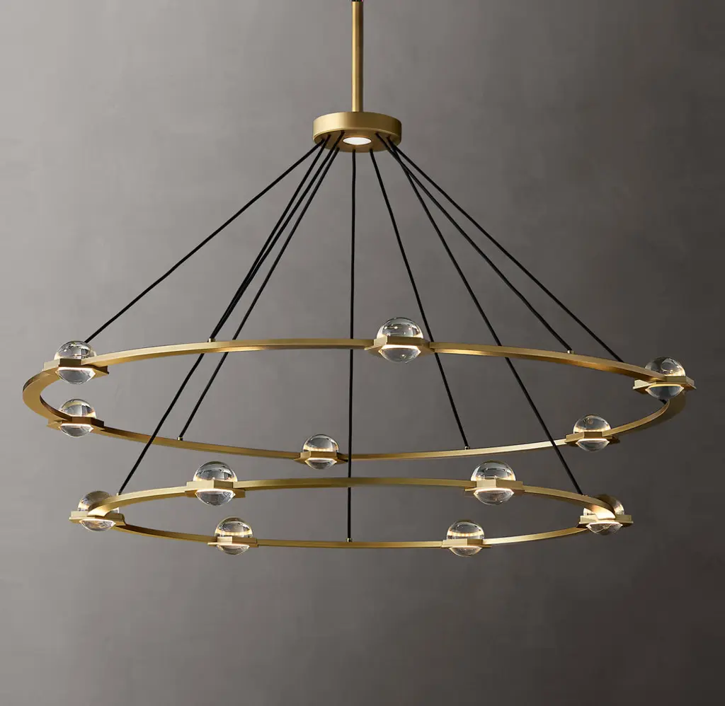 Spare and elemental, Jonathan Browning's Éclatant collection features lighted crystal orbs, suspended in hexagonal fittings within a flat metal frame. The design was inspired by plans for the cenotaph of Sir Isaac Newton drawn by 18th-century architect Etienne Louis Boullée, a visionary ode to physics reinterpreted in a stunning contemporary form. SHOP THE ENTIRE COLLECTION