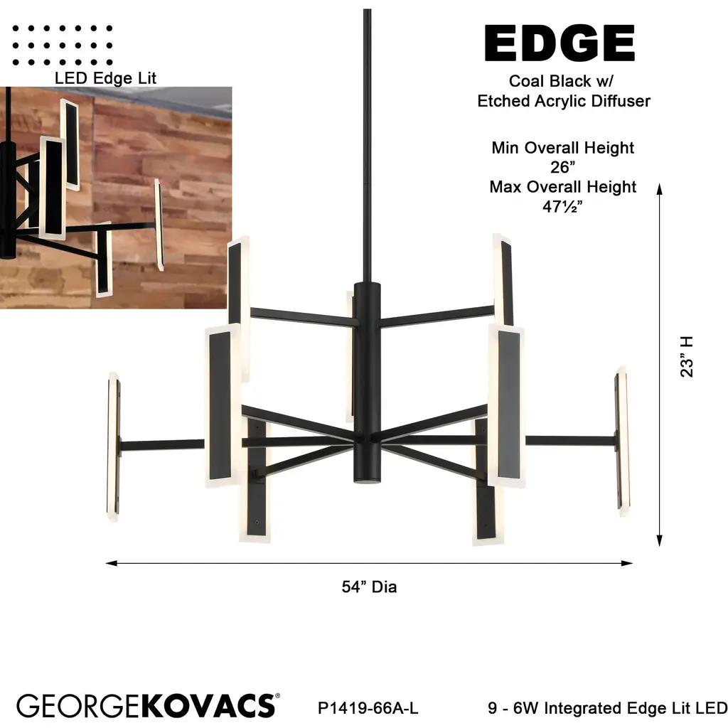 This 9 light Chandelier from the Edge collection by George Kovacs will enhance your home with a perfect mix of form and function. The features include a Coal finish applied by experts. This item qualifies for free shipping!
