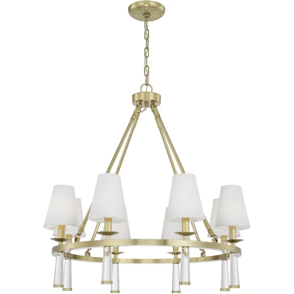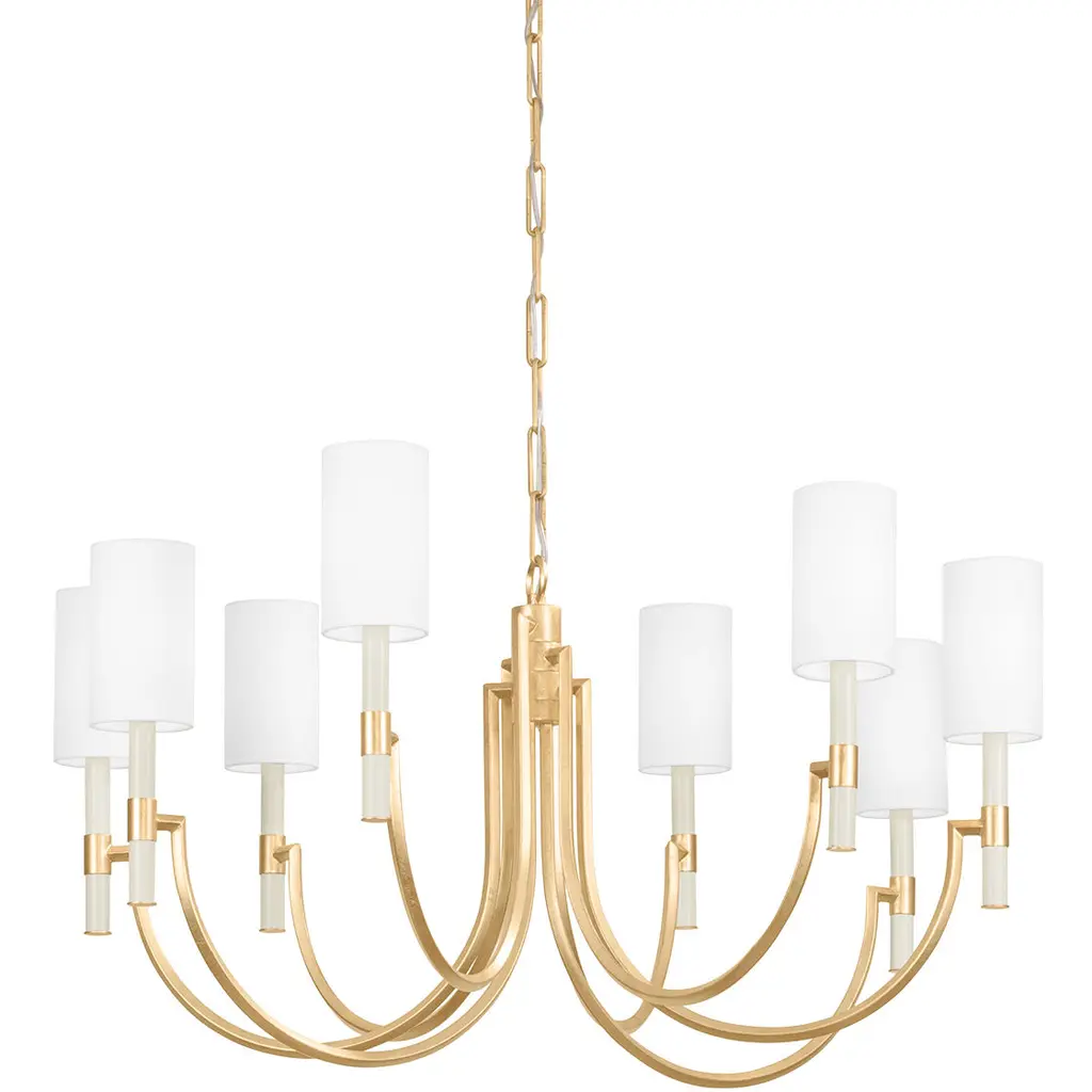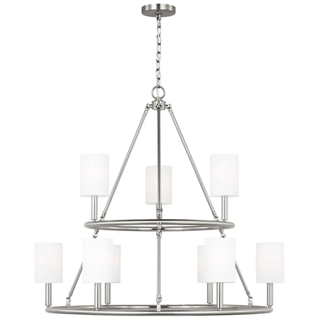 The Egmont 2-Tier Chandelier by Visual Comfort Studio gives your home interior a refreshing transitional personality, one underscored by clean geometry. LED lamps are arranged in a 2-tiered fashion along the steel, ring-shaped frames. These lamps perch atop slender holders that recall classic candles. The lamp's light is tempered by cylindrical shades of white linen, giving your environment a warm, spacious glow.
