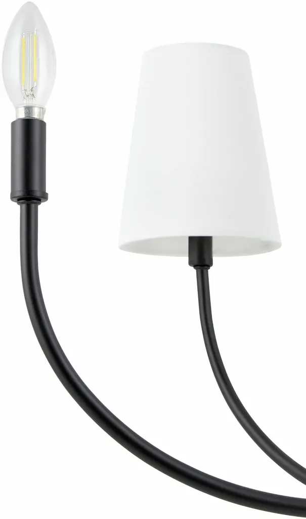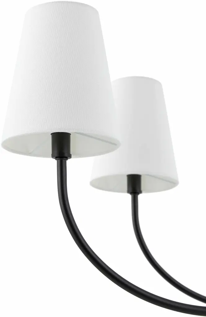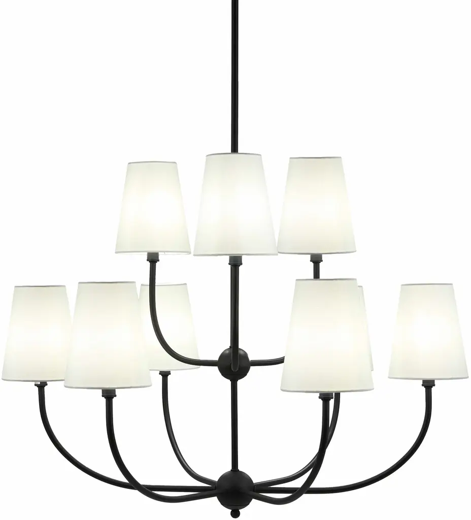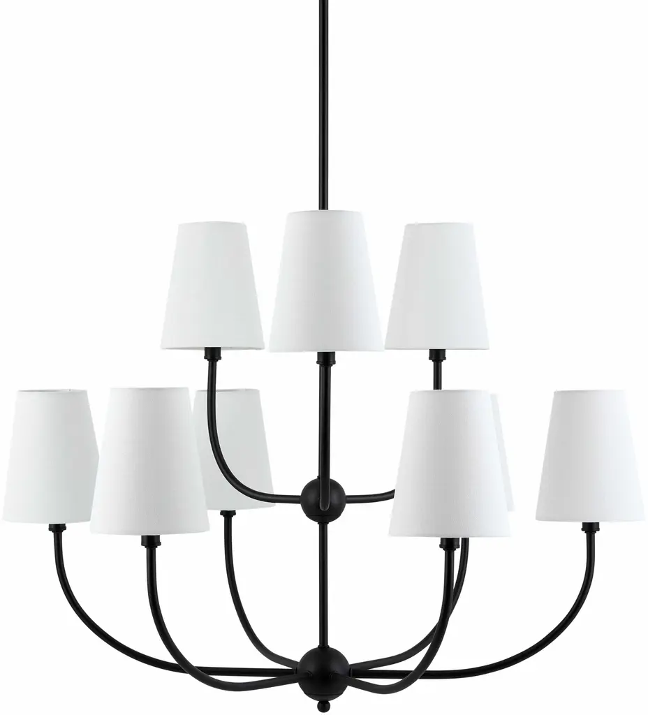 Collection: Eilenburg Colors: Black, White Material: Fixture: Iron / Shade (Outside): Cotton / Shade (Inside): Cotton Styles: Traditional Made In: China Lighting Type: Chandelier Shade Material: Cotton Shade Color: White Hanging Method: Rod Cord Length: 8' Number of Bulbs: 9 Socket Type: E-12 Bulb Wattage: 60W
