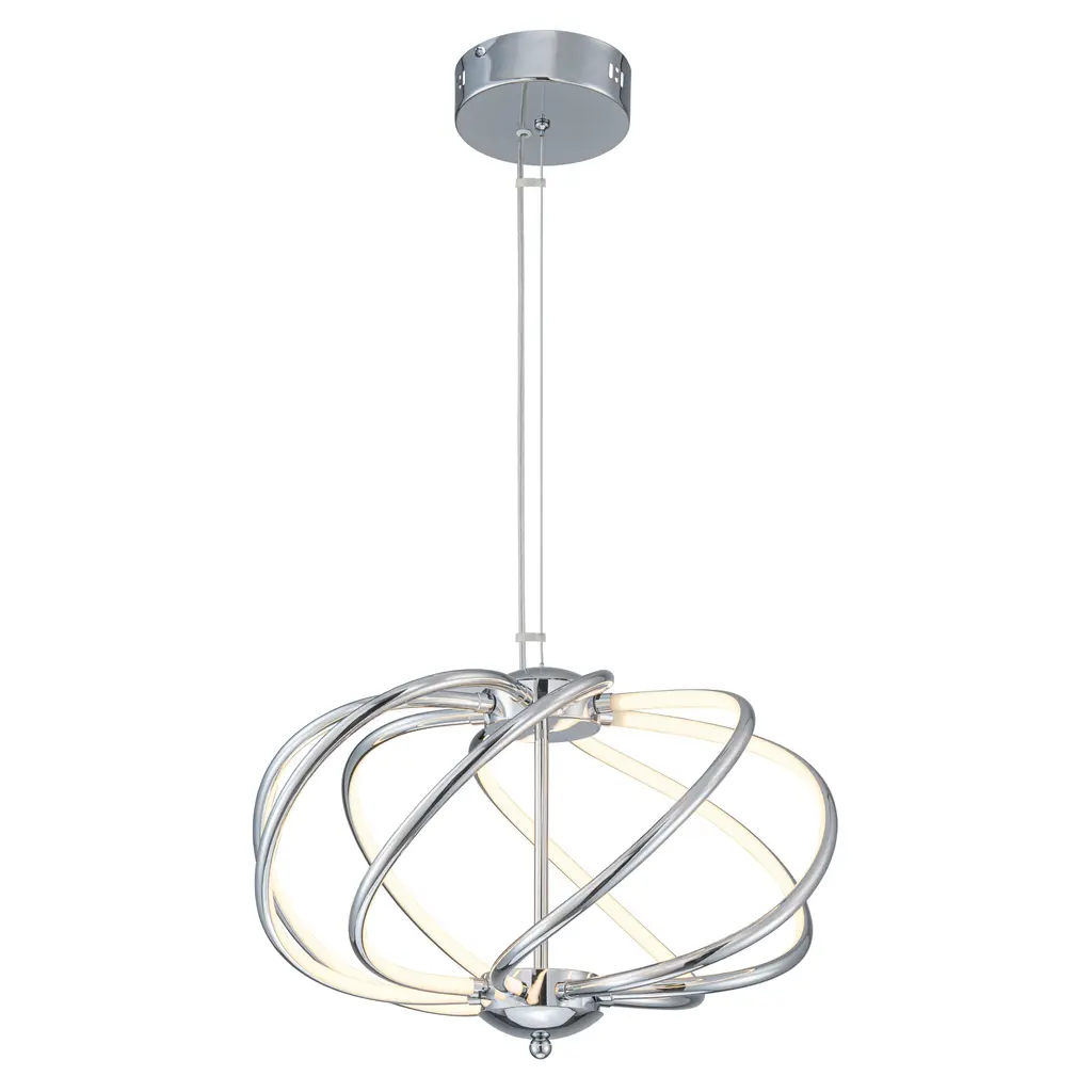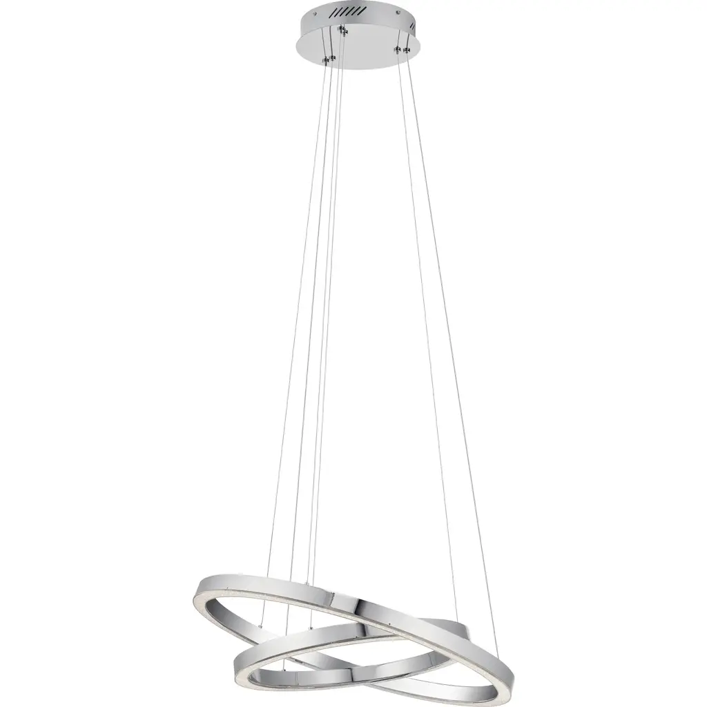 Draw attention to your space with the modern flair of this contemporary LED chandelier from Elan. A beautiful choice in the entry or dining room, this chandelier features an endless spiral design with a chrome finish and an etched acrylic diffuser. The sleek, engaging design delivers energy efficient lighting to any room.
