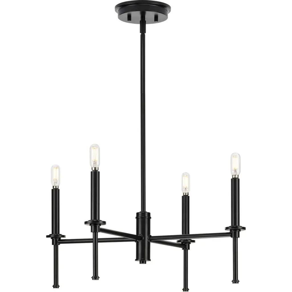 Elara has a clean contemporary design that works across many decor styles. The chandelier features a slender, chic form with stylized finials inspired by a chess pawn for a classically modern look. Select tapered or fabric drum shades, or clear cylindrical glass shades to customize the design and create the perfect amount of even illumination.