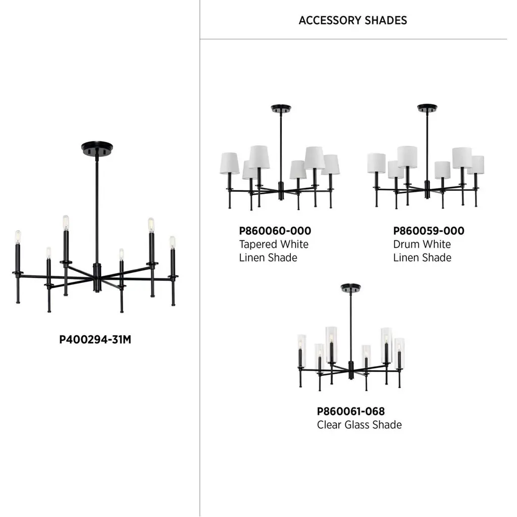 Elara has a clean contemporary design that works across many decor styles. The chandelier features a slender, chic form with stylized finials inspired by a chess pawn for a classically modern look. Select tapered or fabric drum shades, or clear cylindrical glass shades to customize the design and create the perfect amount of even illumination.