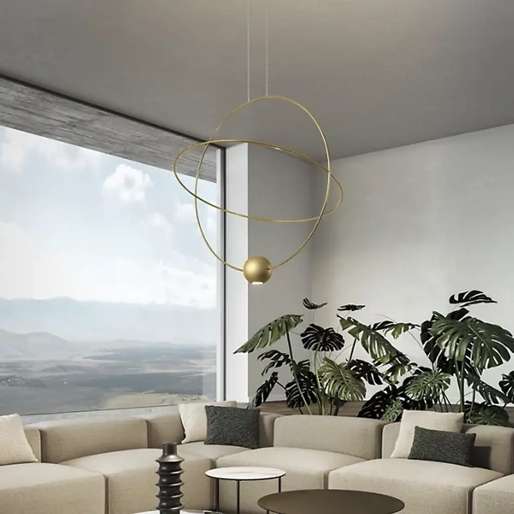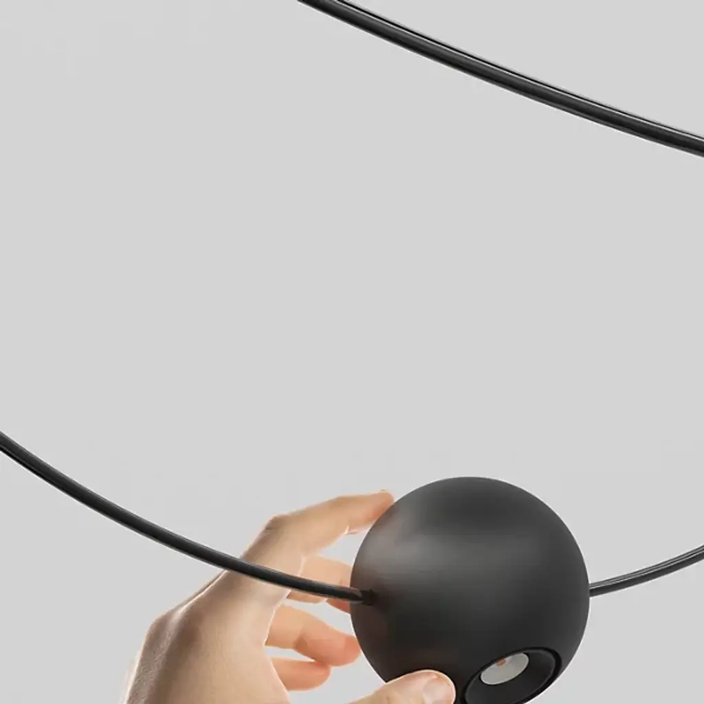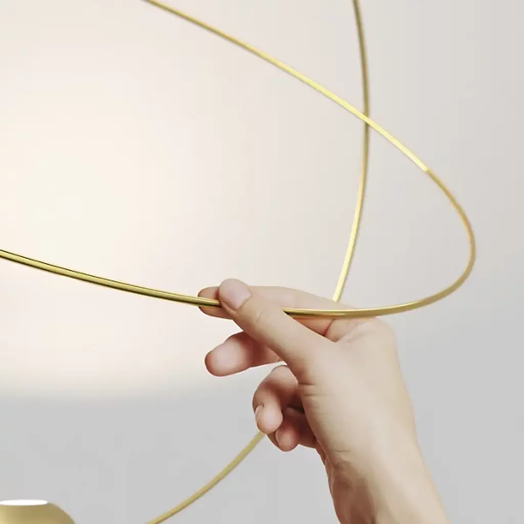 The Elara LED Chandelier from LODES boasts a stunning contemporary style that is at once celestial and functional. Designed by designer Nika Zupanc in 2022, each fixture is made in Italy with precision from high-quality steel and aluminum. The name "Elara" draws inspiration from astronomy and Greek mythology, and its design mirrors the celestial trajectory of planets. Featuring two adjustable metal rings and a small sphere housing the light source, the Elara allows for dynamic configurations, creating fluidity and movement, with a central ring able to adjust for height and angle to provide a customizable glow that can illuminate an entire room.