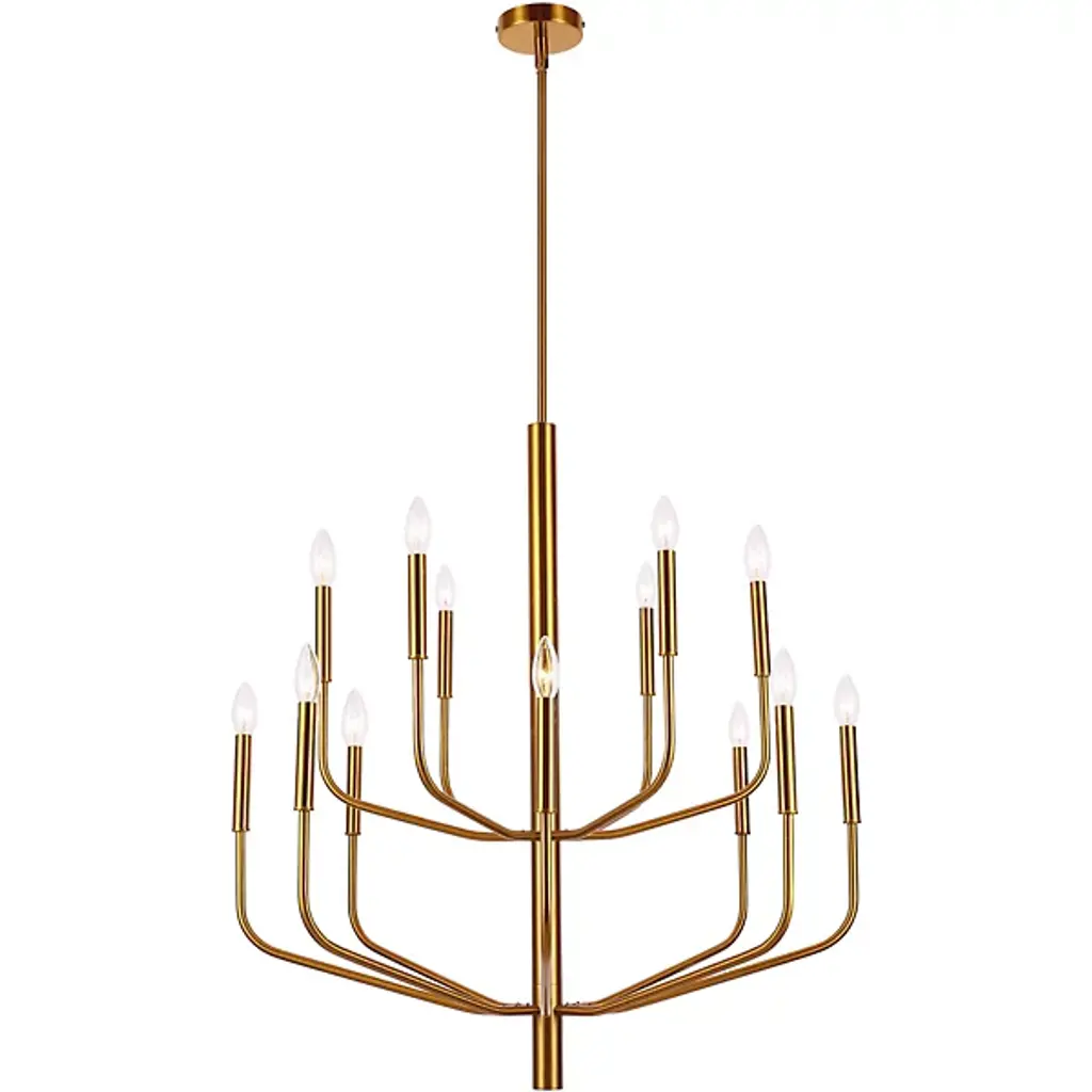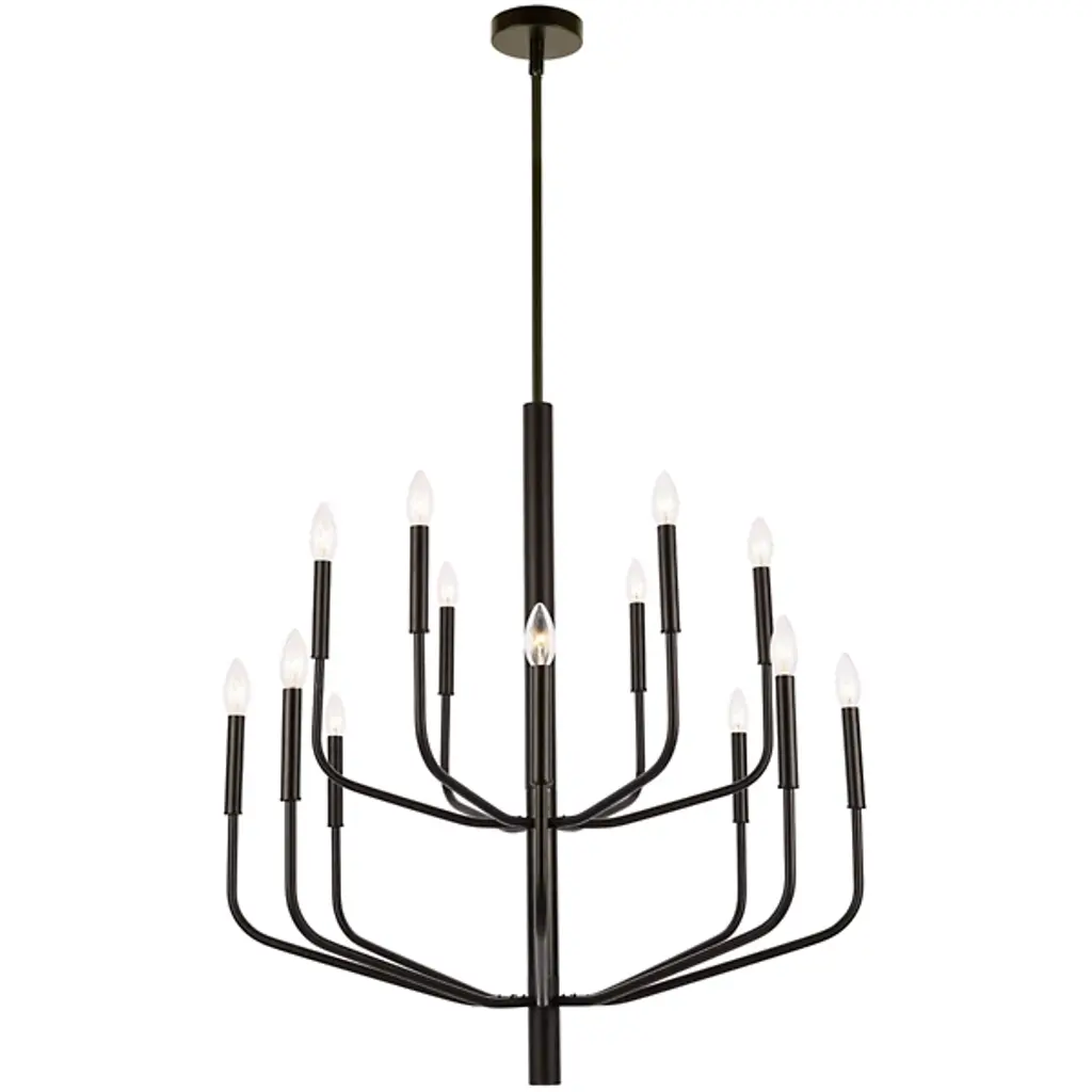 Uplift your grand spaces with the crescendo of inspiring light by the Eleanor 2-Tier Chandelier from Dainolite. Let the piece make an elegant first impression in your living room, dining room, or foyer. It takes the traditional chandelier silhouette and refines it with modern sensibilities. Made from metal, the chandelier draws your eyes with the dynamic movement of its arms. The arms bend handsomely to create a familiar tapered silhouette. Slender lamp holders top the arms in elegant and low-key accents. Give each holder a candelabra bulb to help realize its modern classic personality. The pointy bulbs produce bright pops that come together to create a grand aura of illumination.