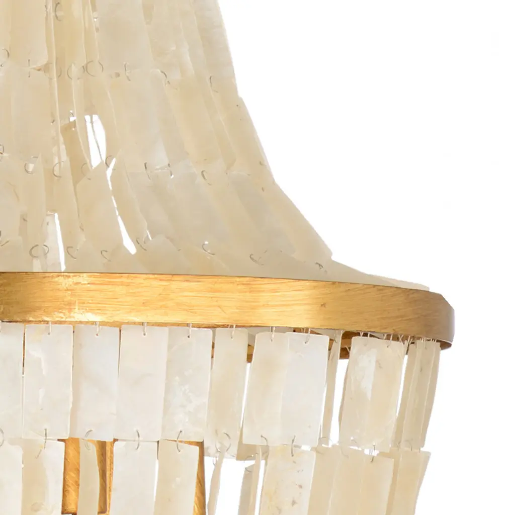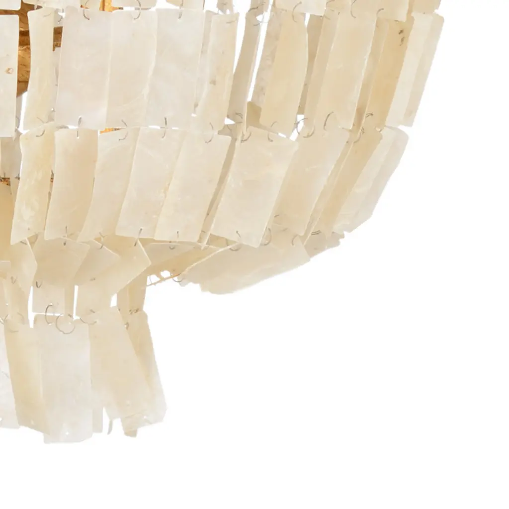 A Modern Take On An Empire Silhoutte With An Antique Gold Leaf Frame Accented With 100's Of Capiz Shell Strands, Illuminated From Within. Six Lights. Comes With 6 Feet Of Chain.
