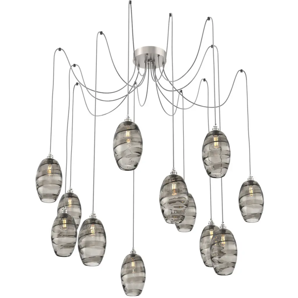 Ellisse Square Multi-Port-12-Metallic Beige Silver-Optic Blown Glass - Smoke-Silver Cloth Braided Cord-E26