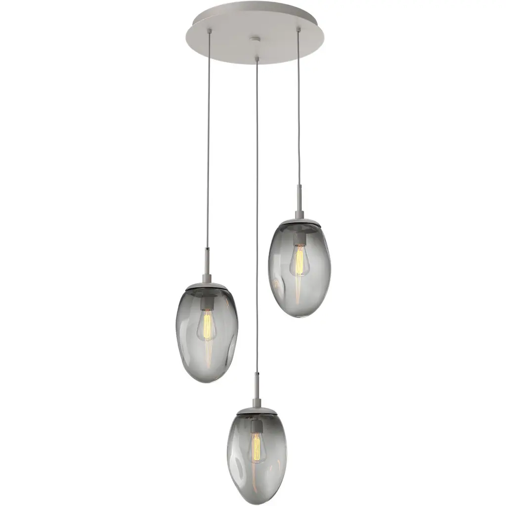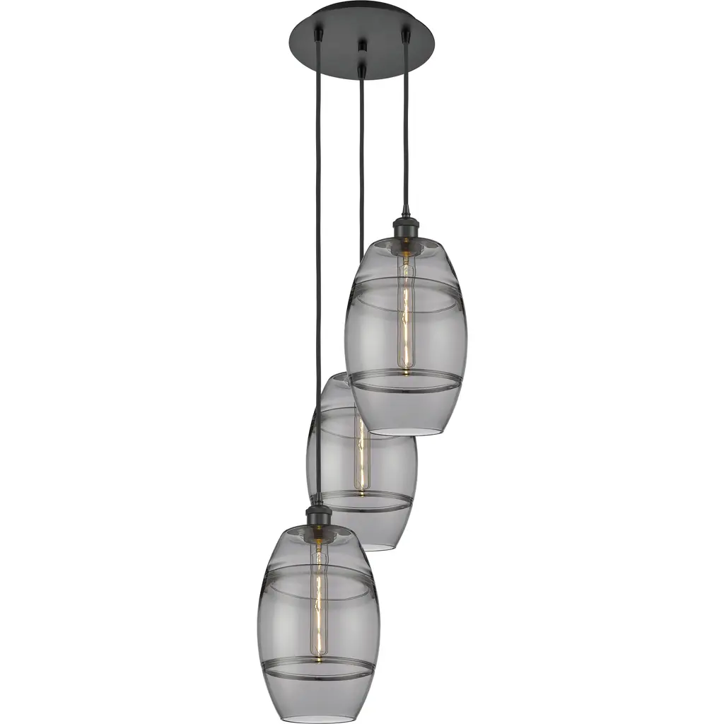Ellisse Round Multi-Port-03-Matte Black-Optic Blown Glass - Smoke-Black Cloth Braided Cord-E26