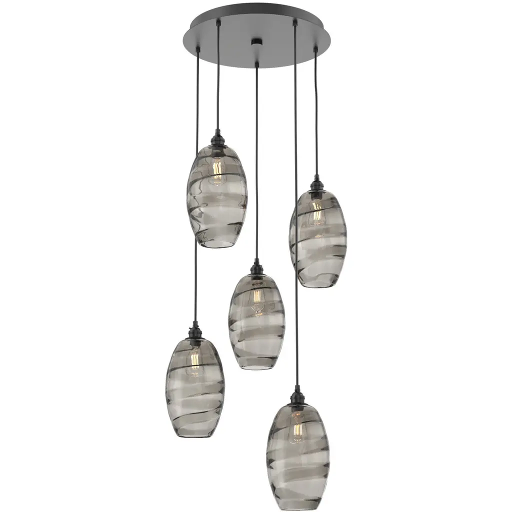 Ellisse Round Multi-Port-05-Metallic Beige Silver-Optic Blown Glass - Smoke-Silver Cloth Braided Cord-E26