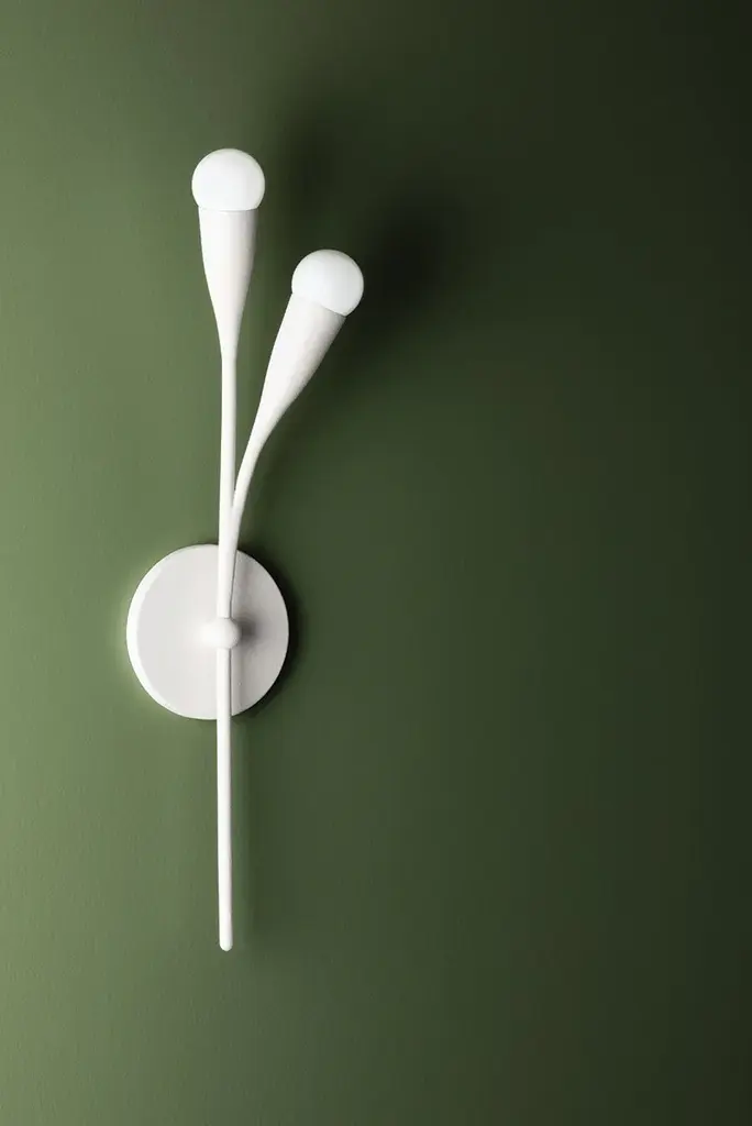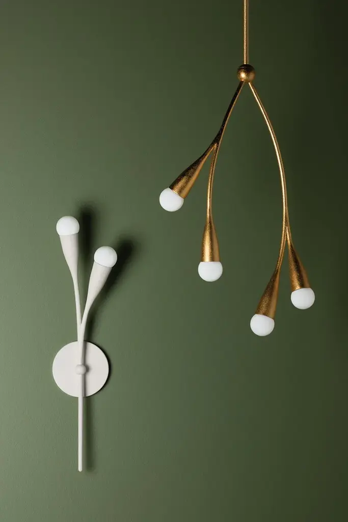Bursting with style, Elsa draws inspiration from cherry blossom trees. Slender arms branch out from small spheres, ending in buds of petite matte white globes. This soothing, organic design is available as a wall sconce, pendant, linear, and chandelier in Gold Leaf and Textured White. For the best look, we recommend G16.5 incandescent matte white finish bulbs.
