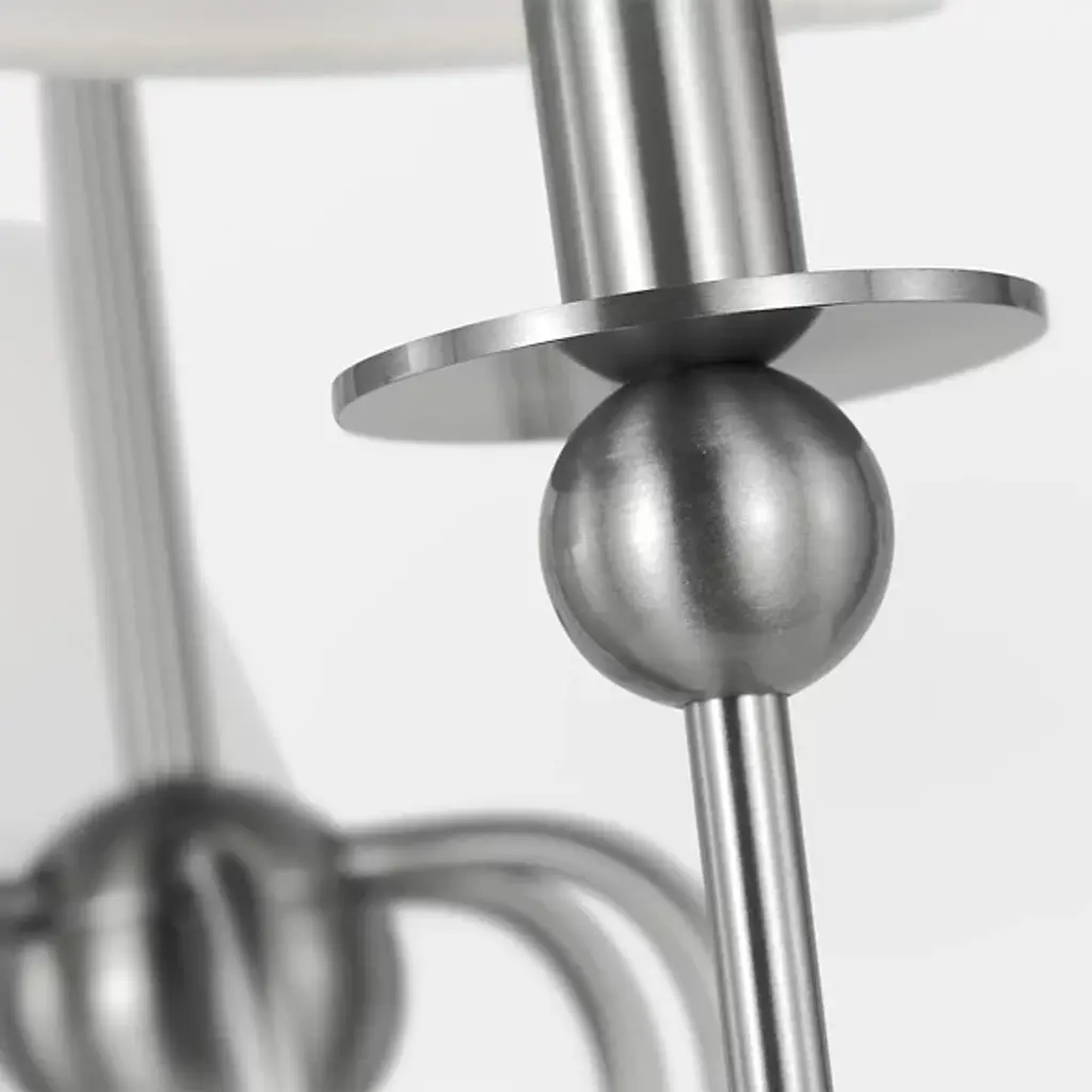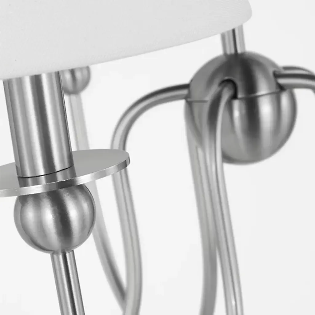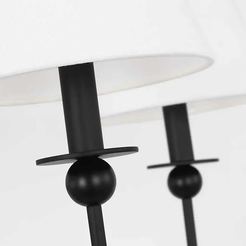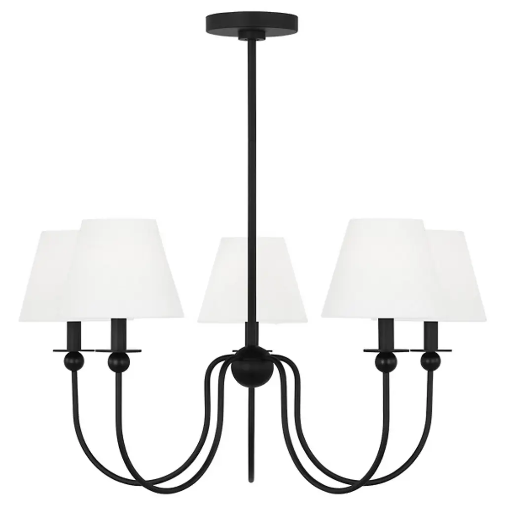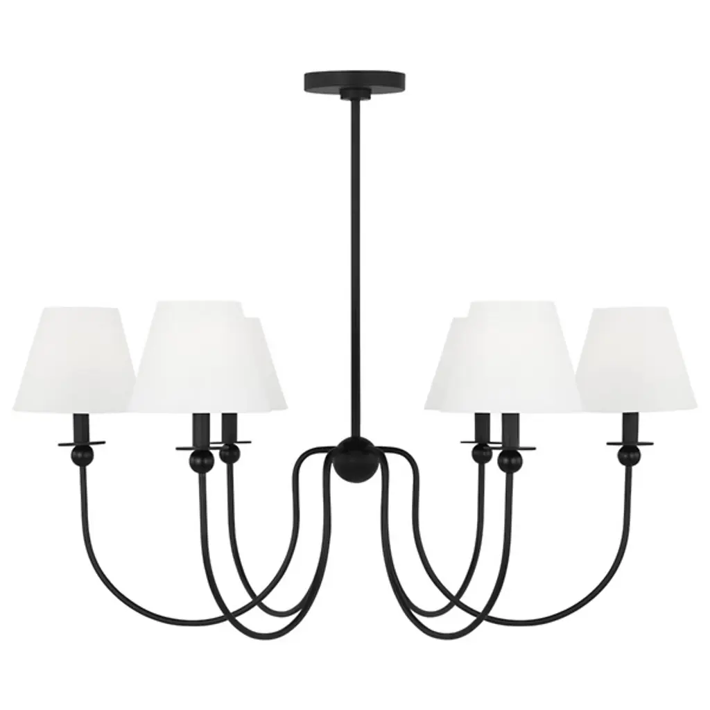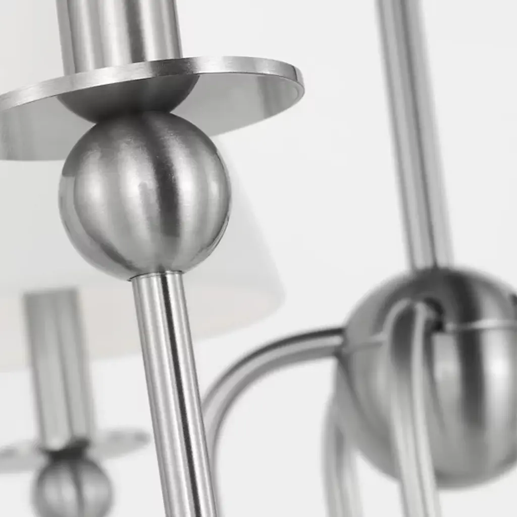 The Elsay Chandelier from Visual Comfort Studio, designed by Drew & Jonathan Scott, updates traditional lighting with gracefully curved arms that sweep out from a central sphere. The J-shaped arms create a fluid, open profile that gives this fixture an airy quality despite its substantial presence. Each arm culminates in a linen fabric shade that diffuses light pleasantly throughout dining areas, entranceways, and living rooms. Small spherical details punctuate the design, adding subtle visual interest. This dimmable suspension’s metal frame complements its fabric shades, creating a lighting solution that feels current without chasing trends.