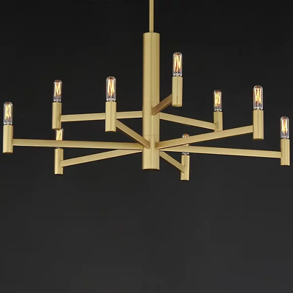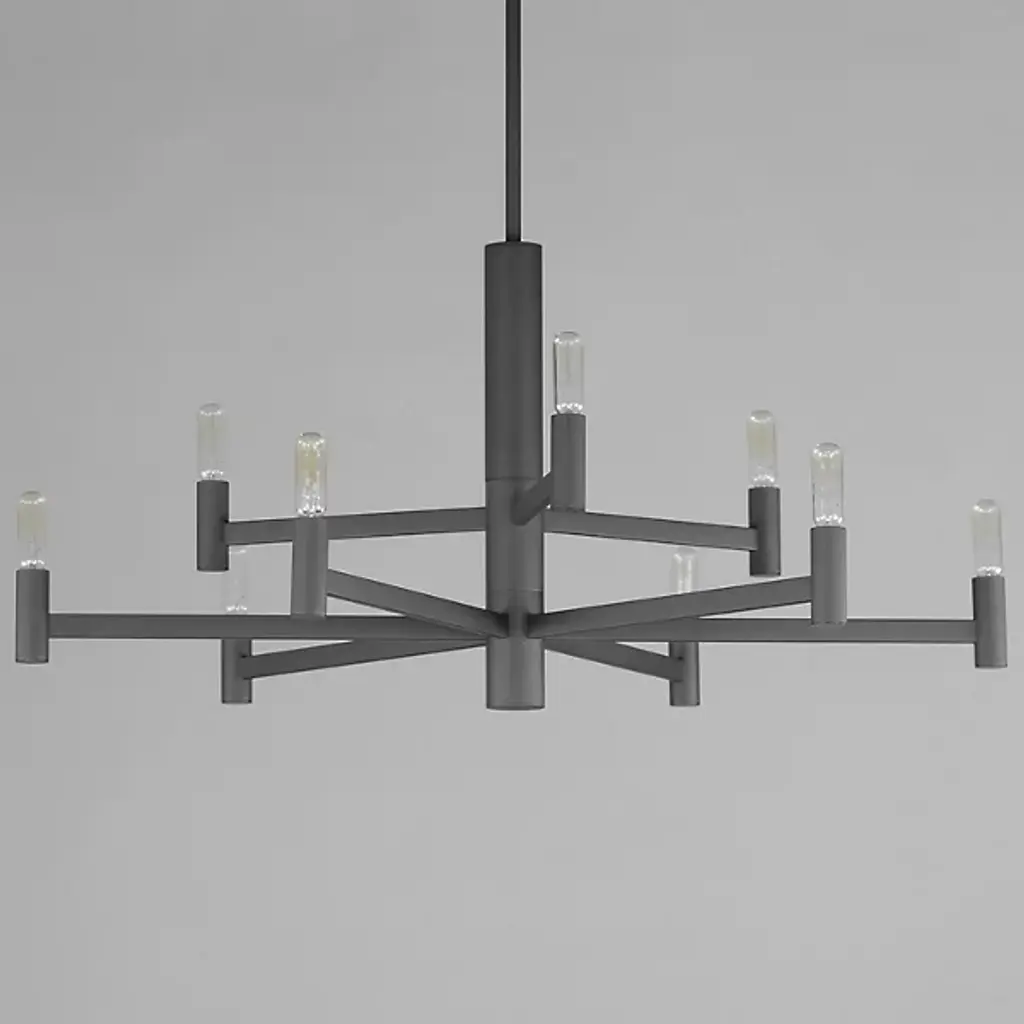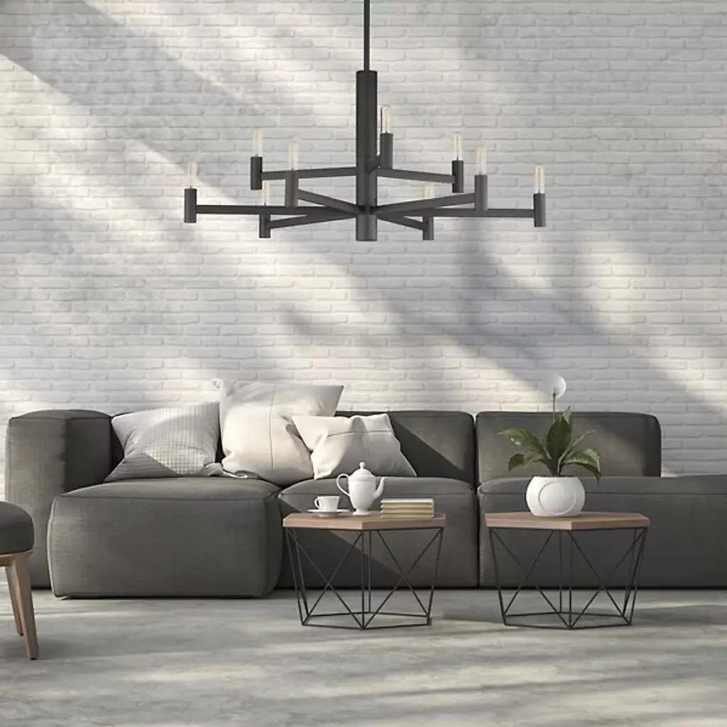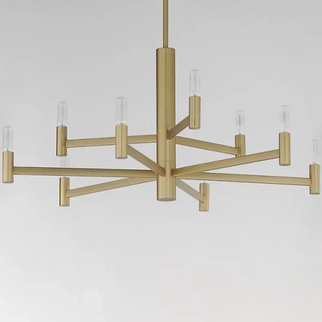 The Emana 2-Tier Chandelier by Maxim Lighting boasts a transitional design featuring straight extensions of rectilinear arms emanating from a cylindrical center housing. This configuration creates a streamlined chandelier aesthetic that seamlessly blends with various interior styles. The candelabra, fashioned in a cylindrical form, complements the overall geometry. Versatile and budget-friendly, this collection suits diverse design aesthetics. Customize with tubular lamps for an industrial or modern feel, or use torpedo-shaped ones for a contemporary chandelier update.