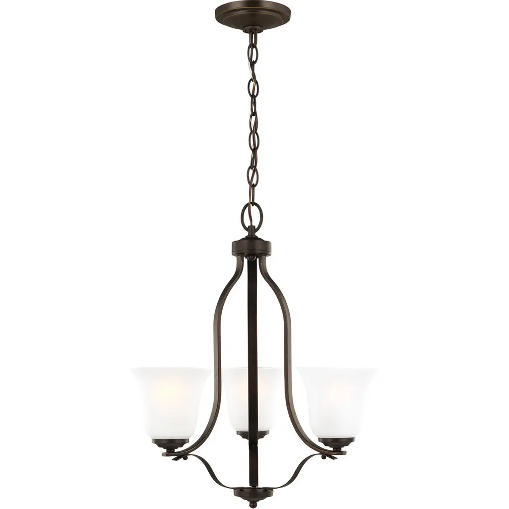 The Emmons three light single tier chandelier in brushed nickel is an ENERGY STAR½ qualified lighting fixture that uses LED bulbs to save you both time and money. The Emmons lighting collection by combines form and function in a traditional empire silhouette. Trumpeted Satin Etched glass shades and a circular finial further enhance the design. Cluster three sizes together in a multi-fixture installation to make a beautifully dramatic statement in the living room, foyer, entryway or family room. The Emmons collection comes in two finishes: Brushed Nickel and Heirloom Bronze. Its assortment includes three-, five- and nine-light chandeliers; one-light mini pendant, three-light pendant, two-light semi-flush mount; one-light wall sconce; and two-, three- and four- light bath vanity fixtures. Incandescent and ENERGY STAR-qualified LED lamping are available; all fixtures are California Title 24 compliant.