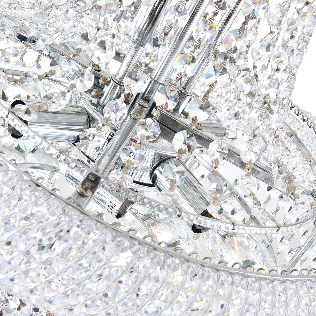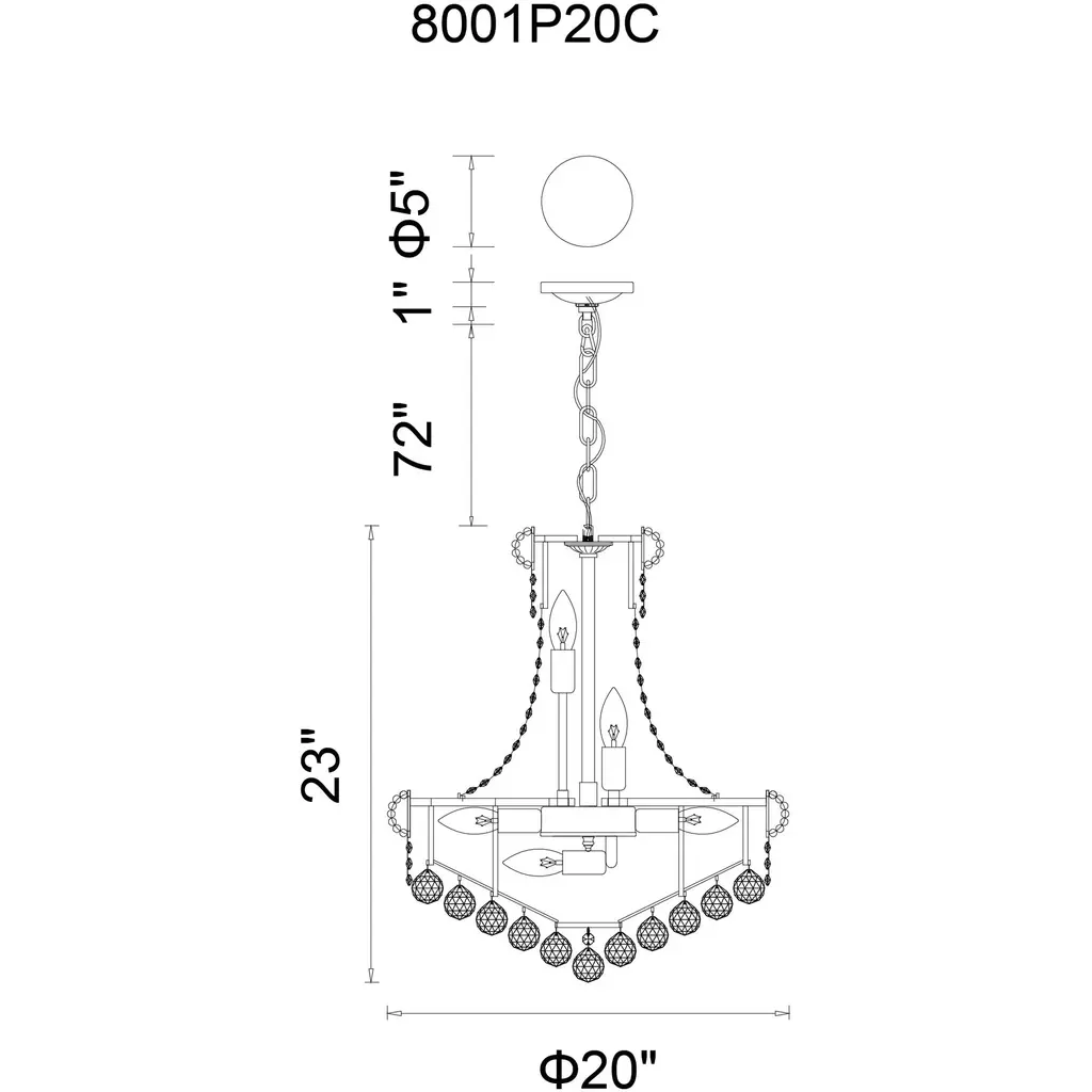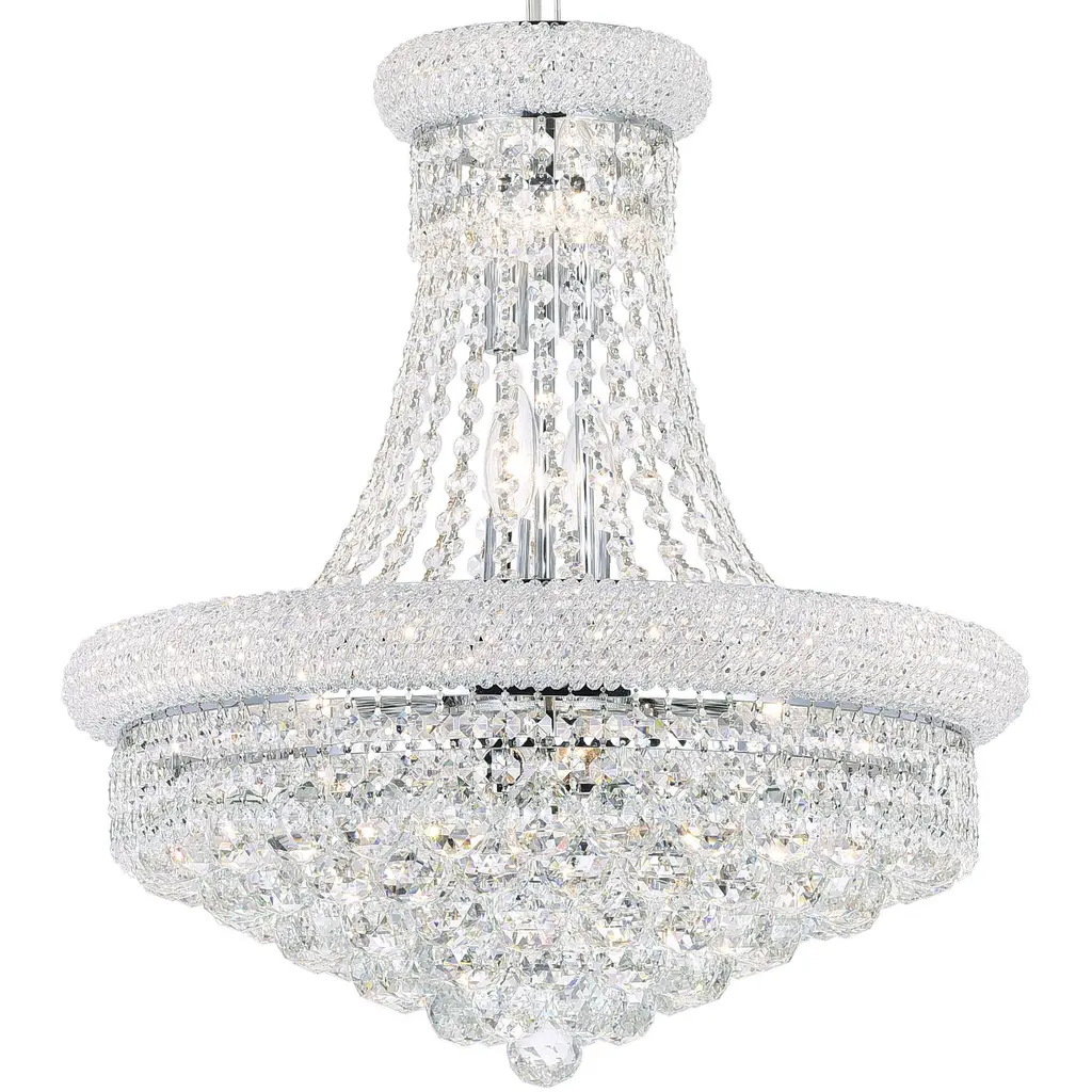 Infuse your home with sophistication and radiance with the 8001P20C from our Empire Collection. Featuring an iconic empire-style silhouette with layers of shimmering clear crystals, this 14-light pendant makes a bold impression in any space. The chrome-finished frame provides a sleek contrast to the brilliance of the crystals, creating a timeless piece that blends classic and contemporary aesthetics. Perfectly sized at 20 inches in diameter, it is ideal for dining rooms, stairwells, or entryways that demand a touch of drama and grace. With E12 candelabra sockets and LED bulb compatibility, it balances beauty with practicality. Easy to install and BACL certified, this fixture offers style and assurance.