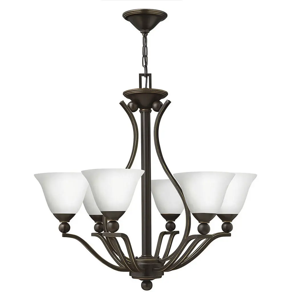Empire; 6 Light; 26 in.; Chandelier with Alabaster Glass Bell Shades