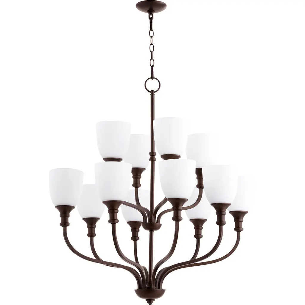 Enclave 9 Light 27 Inch Oiled Bronze Chandelier Ceiling Light In Satin Opal