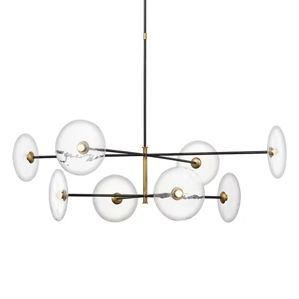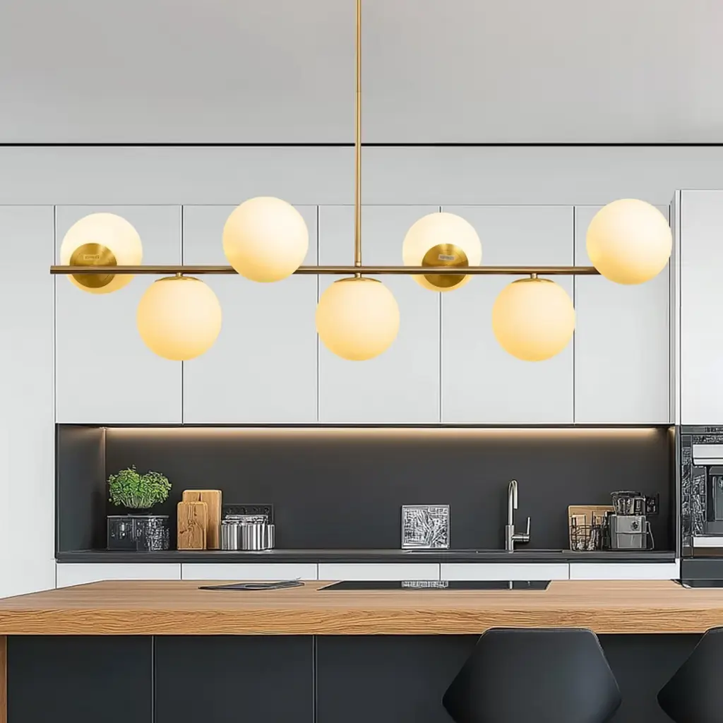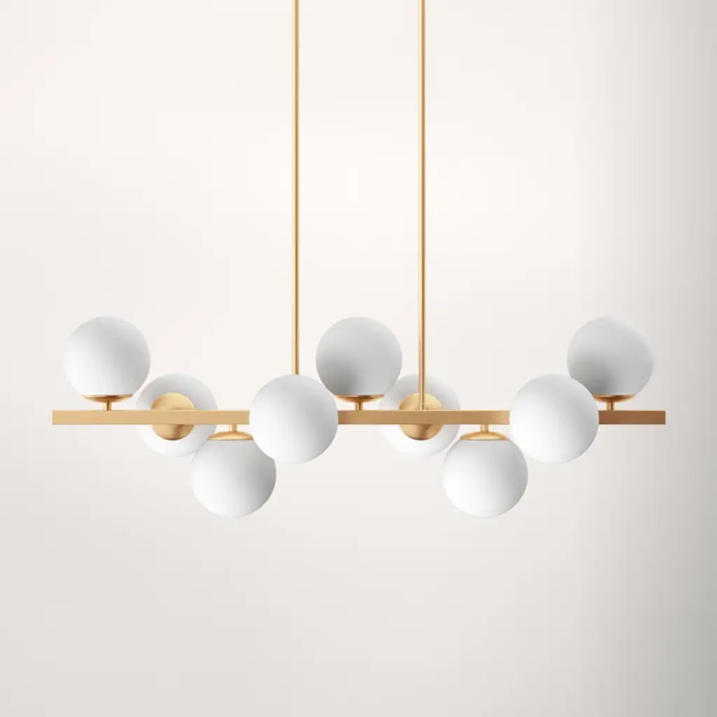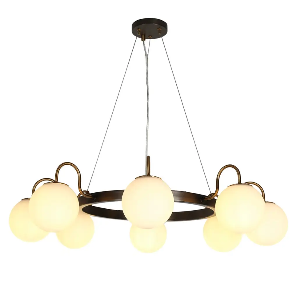 The Equilibrium chandelier is a gold chandelier with lovely glowing globes inspired by Milano aesthetics. The way the undulant frame swirls around the opaque white glass globes allows the composition to maintain its balance perfectly. The antique brass finish on the wrought iron frame is a warm contrast. A design that is still di rigor in the great opera houses in Italy's most fashionable city of Milan, it brings with it a seriously refined aesthetic.