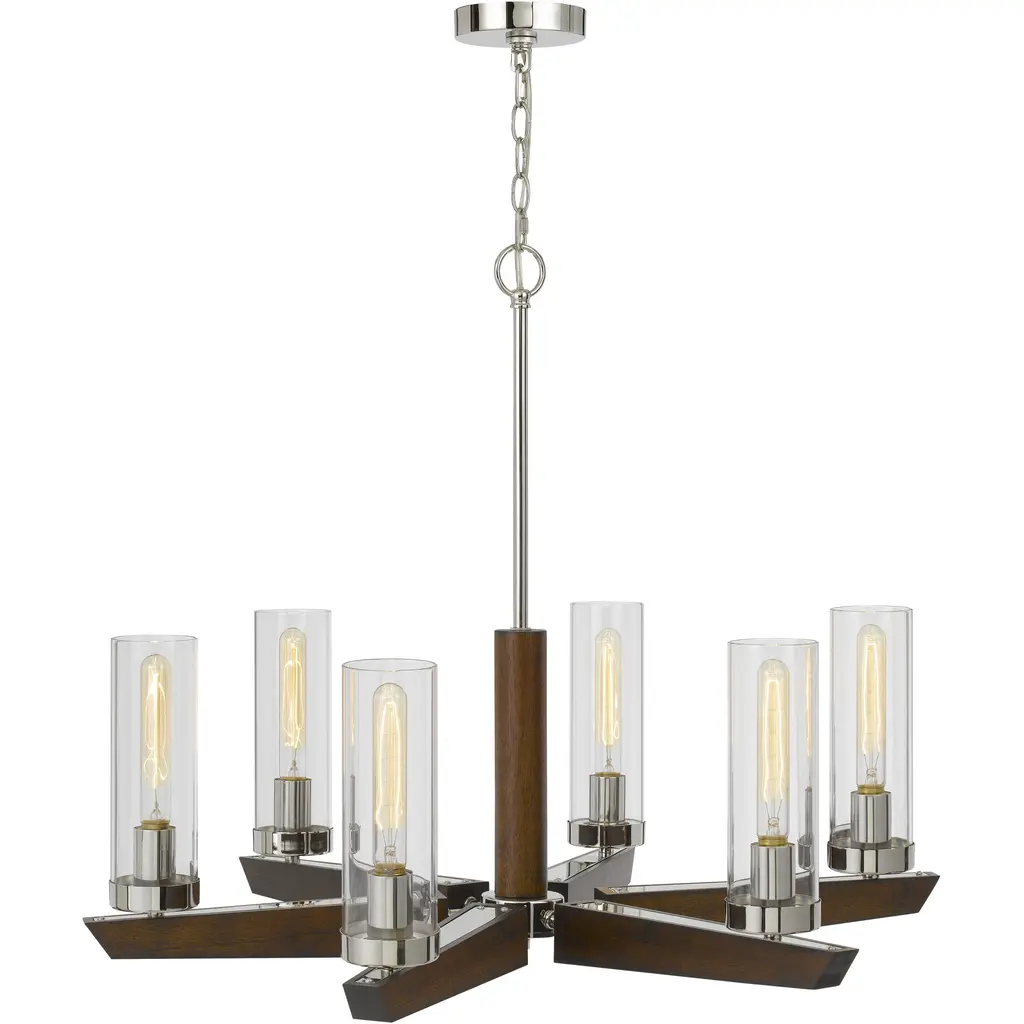 Ercolano 6 Light 32 Inch Wood/brushed Steel Chandelier Ceiling Light