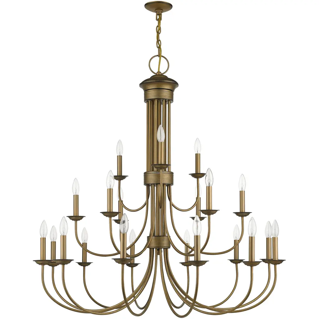 This 21 light Chandelier from the Estate collection by Livex Lighting will enhance your home with a perfect mix of form and function. The features include a Antique Gold Leaf finish applied by experts. This item qualifies for free shipping!