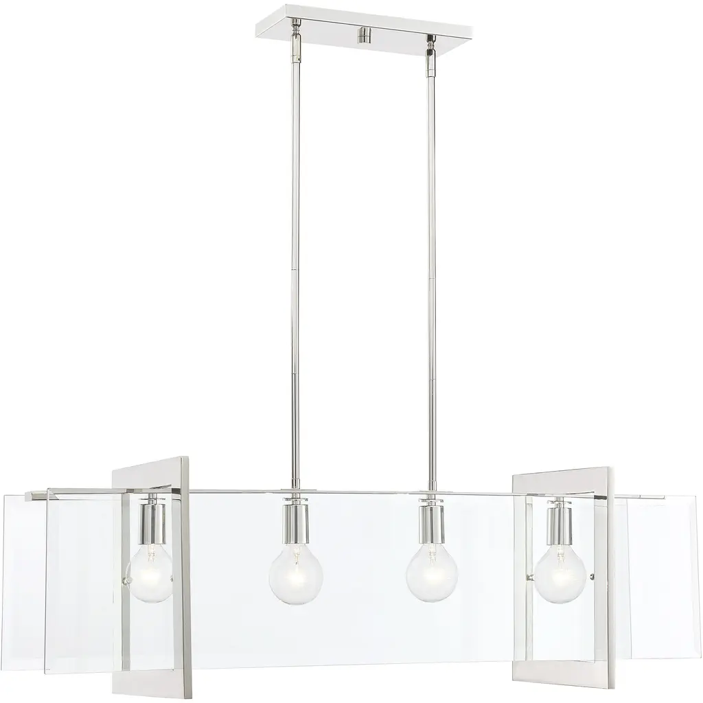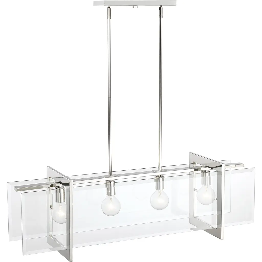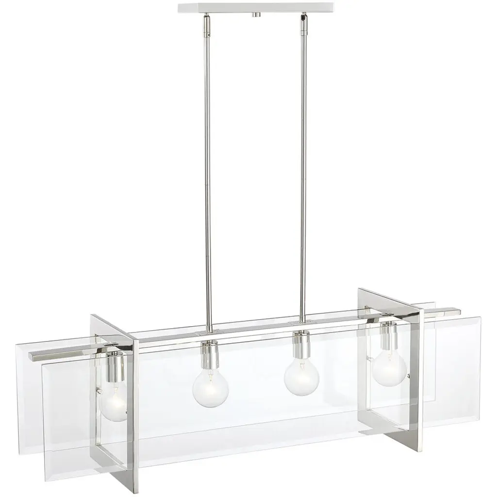 A simple frame finished in Polished Nickel suspending clear beveled glass panels. Ethan is a touch retro, a tad vintage, a dash modern and adds a subtle splash of excitement to your space. This hanging chandelier is designed to be the star of your room. It's designed for easy installation in dining and living areas. A simple frame finished in Polished Nickel suspending clear beveled glass panels. Ethan is a touch retro, a tad vintage, a dash modern and adds a subtle splash of exceitment to your space.