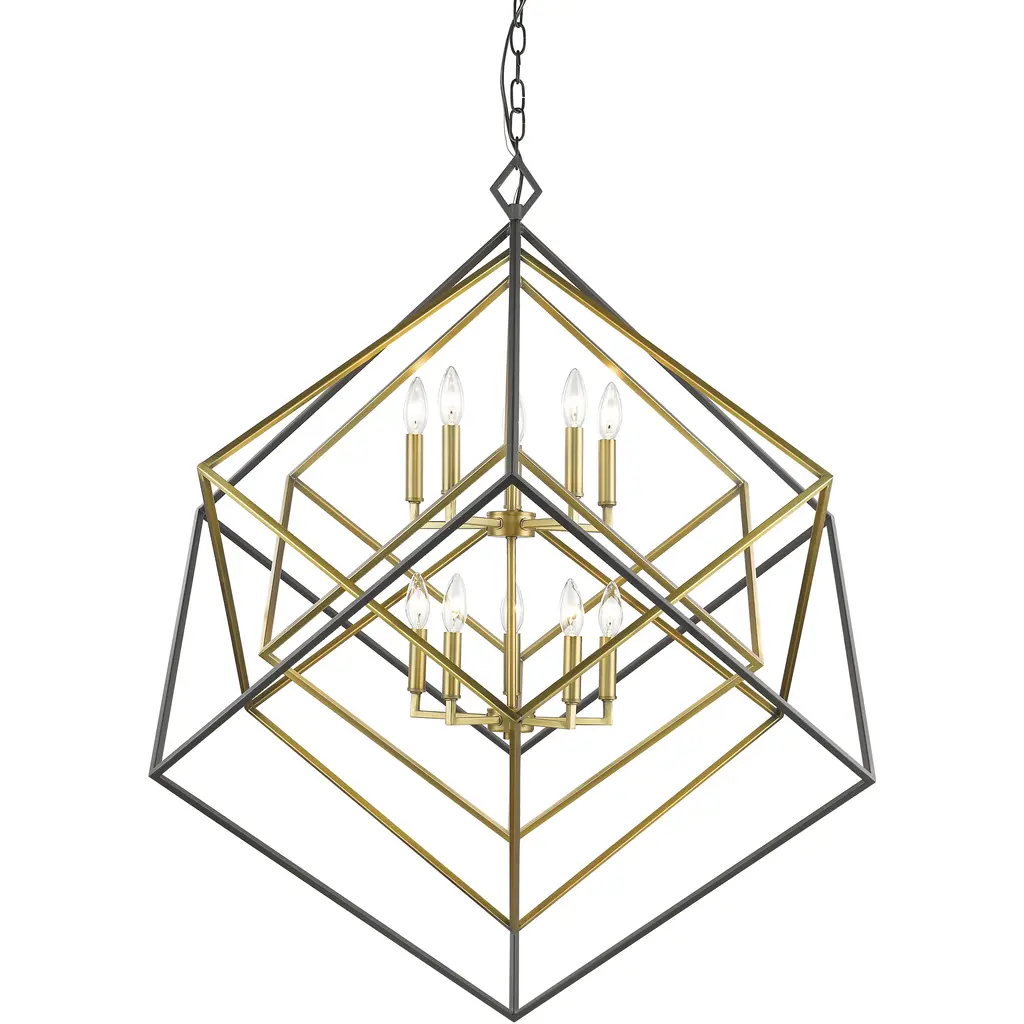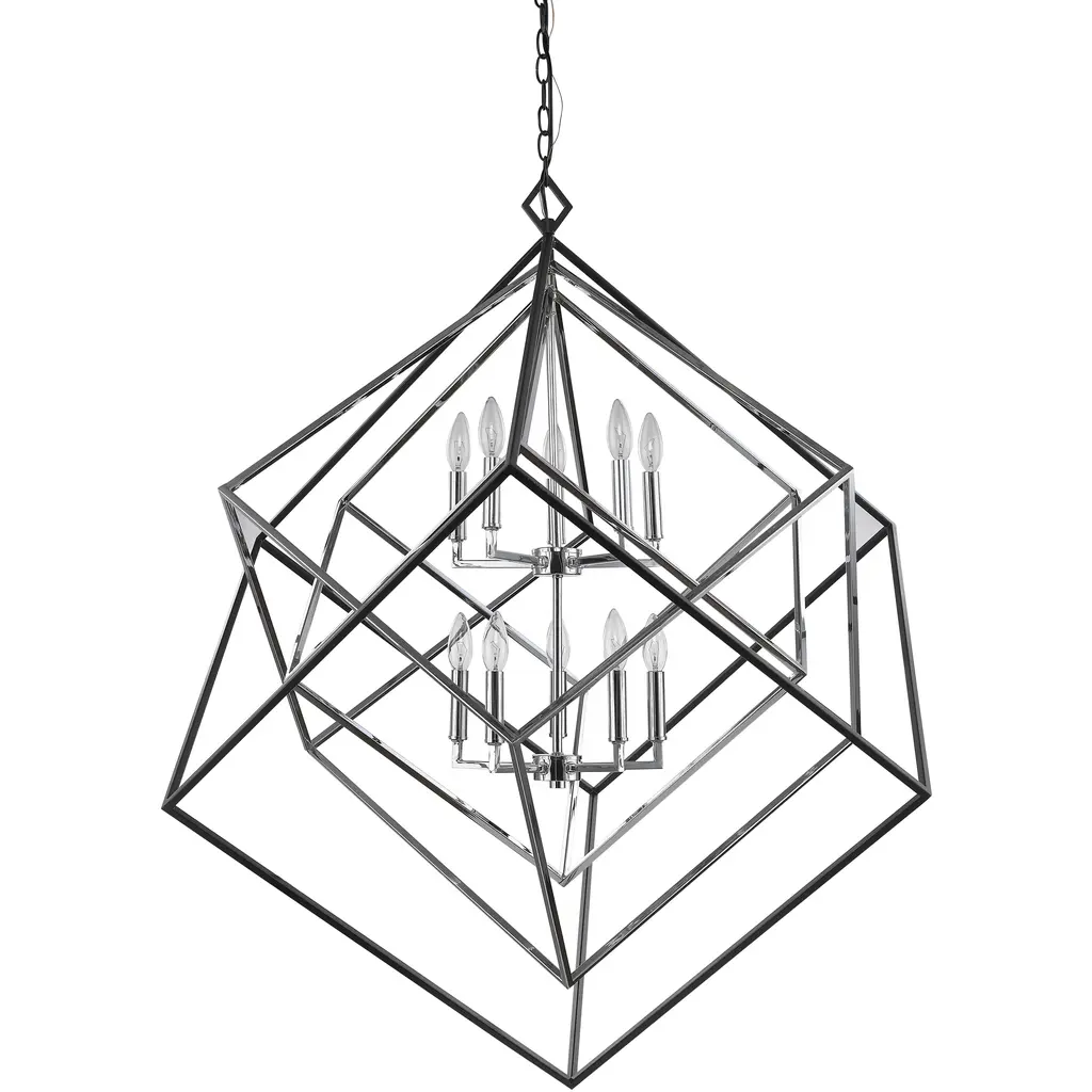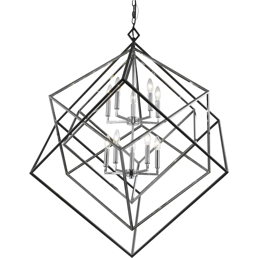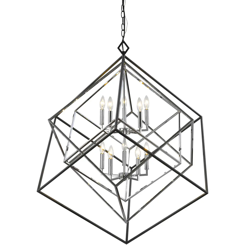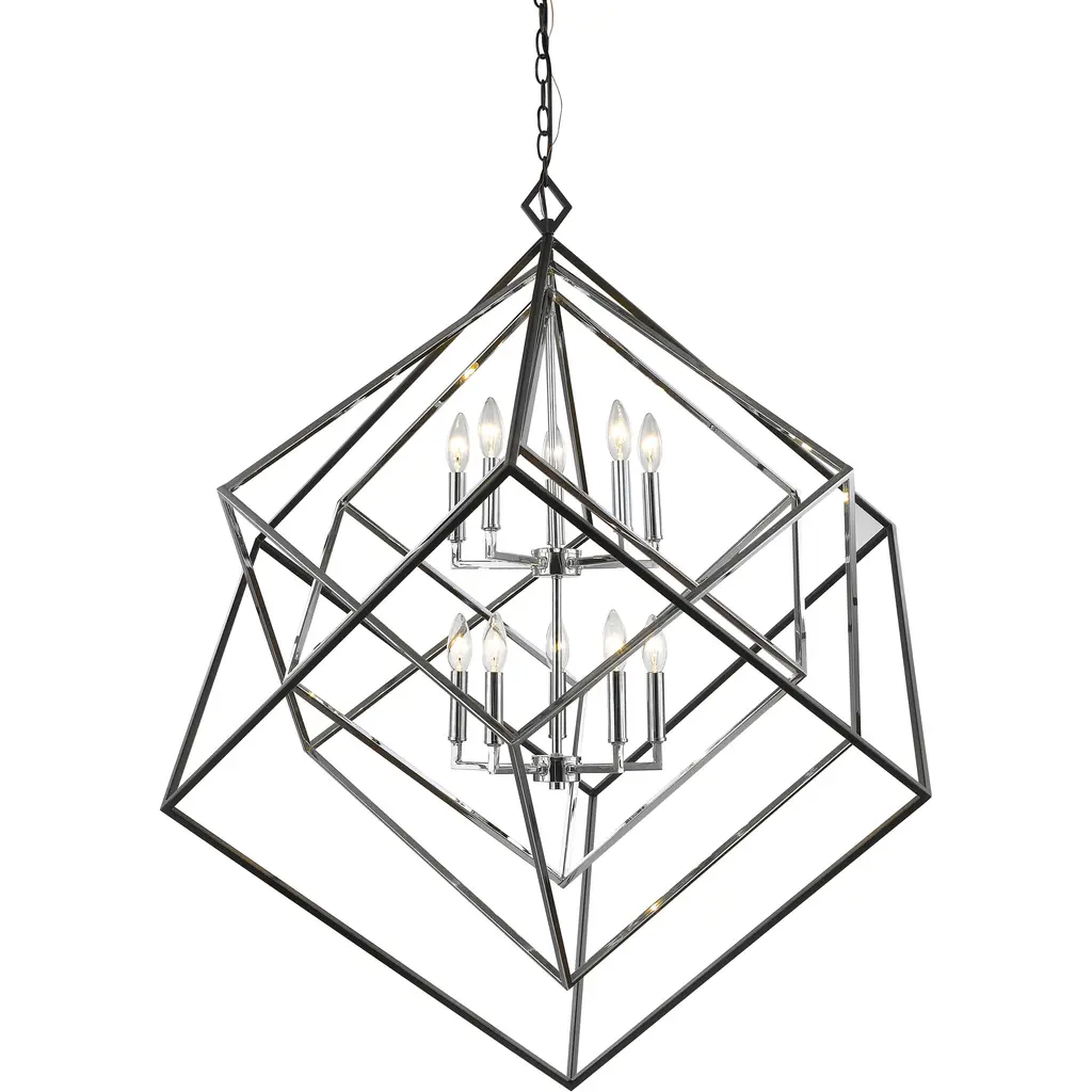 Indulge in a love of dynamic, expressive design with this chrome and matte black 10-light chandelier. Its stunning metropolitan design works with nestling geometric shapes and a dual layer of candelabra-style bulb mounts, creating a surprising mix of motifs and yielding a commanding aesthetic.