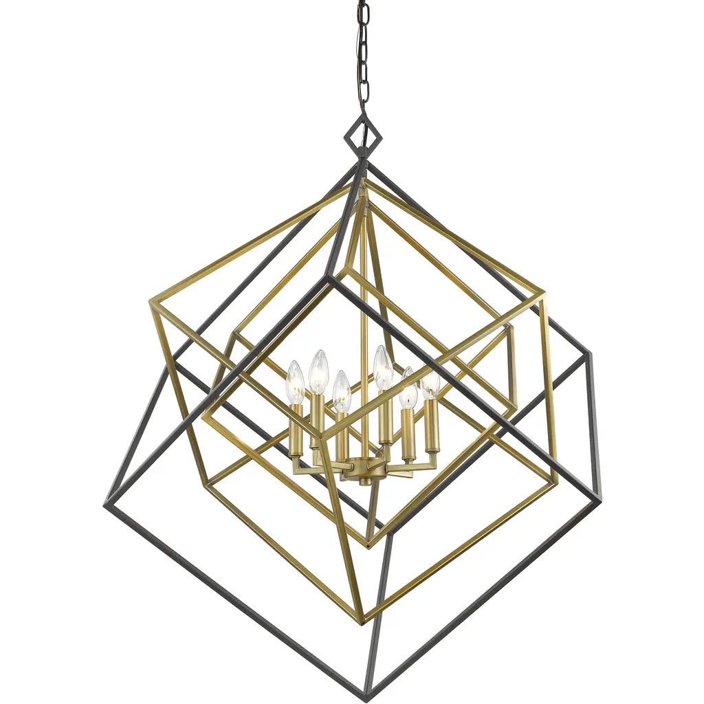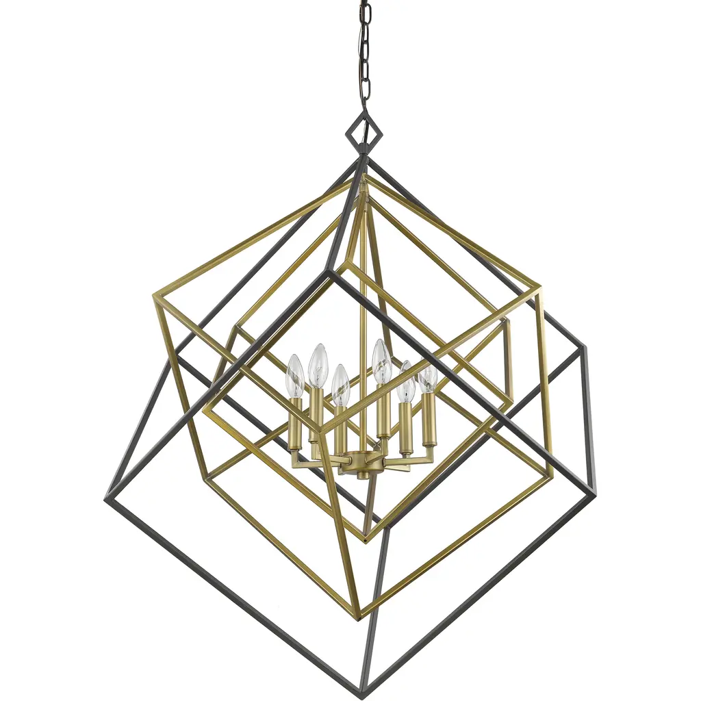 Invigorating and metropolitan, this six-light chandelier embraces warm finishes of olde brass and bronze as it plays up geometric shapes. Its steel frame shows off a complex structure that offers a sweet view of a candelabra-style bulb mount, delivering a mixed motif aesthetic that dresses up any space.