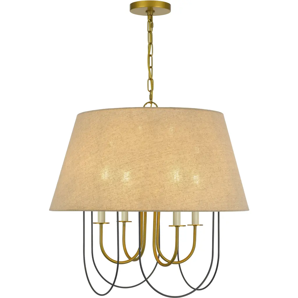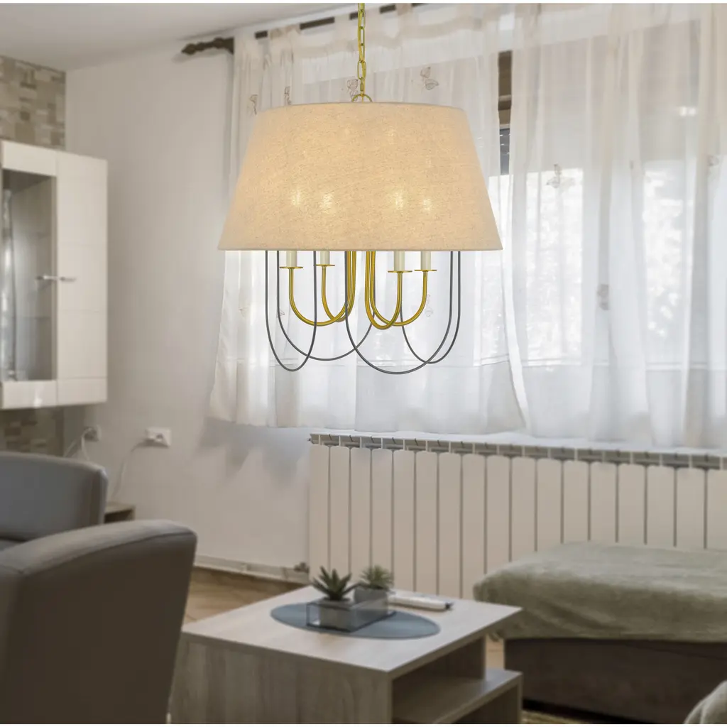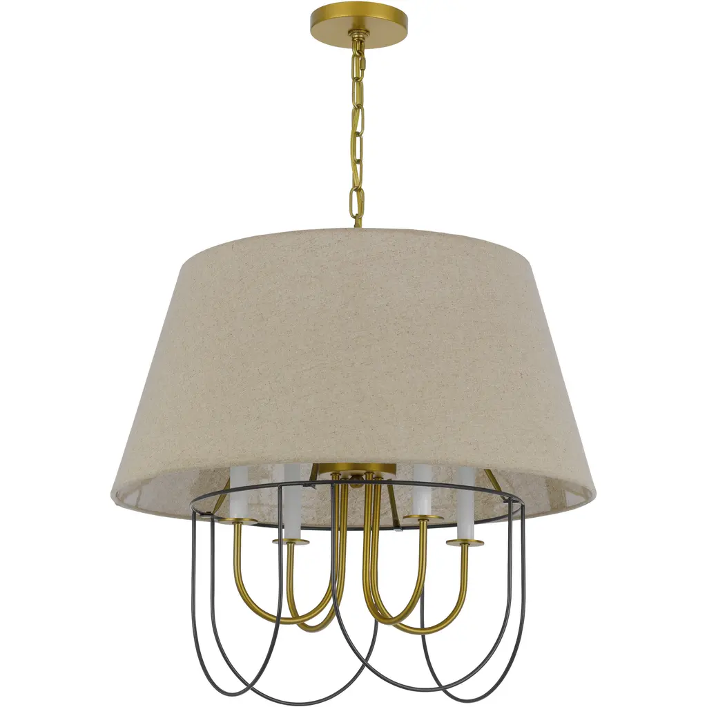 Update your décor with this stylish two tone chandelier. It features a hardback burlap shade to help soften and diffuse the light. With its clean lines and smooth finish, this fixture is a good fit with many different styles and décor.