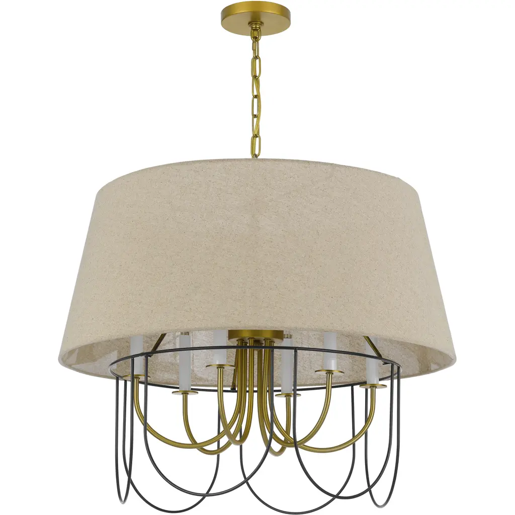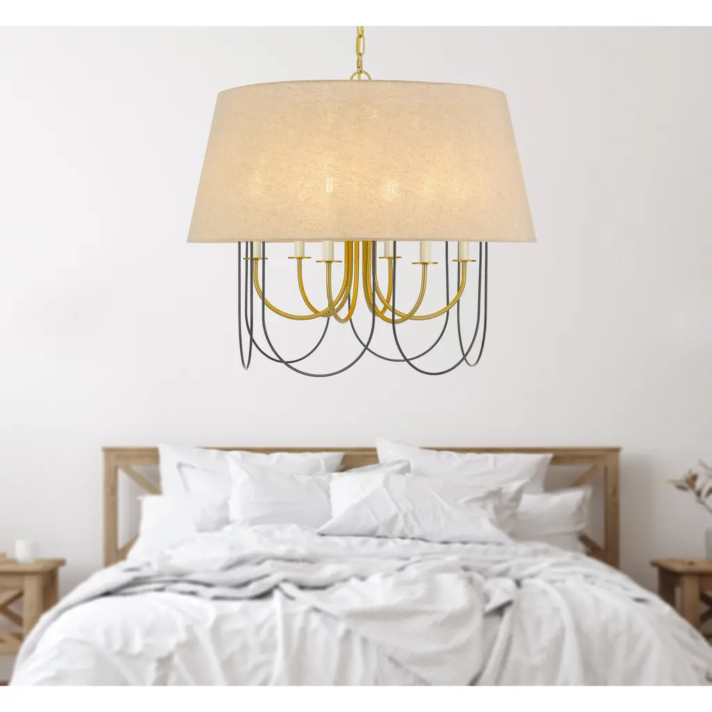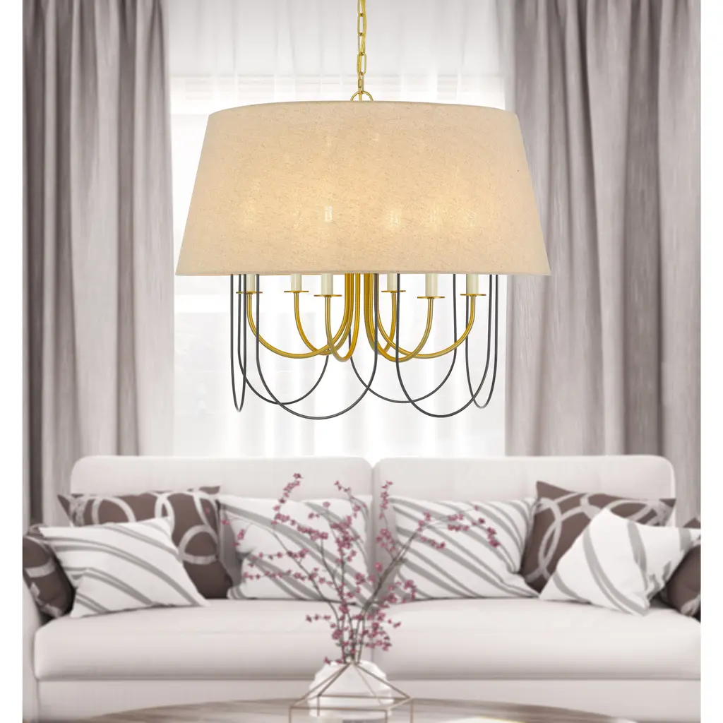 Update your décor with this stylish two tone chandelier. It features a hardback burlap shade to help soften and diffuse the light. With its clean lines and smooth finish, this fixture is a good fit with many different styles and décor.