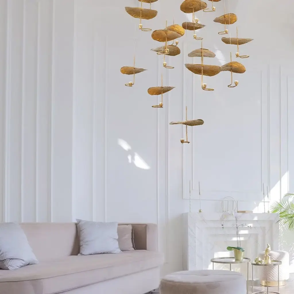 Handmade Metal Shades Feature A Hammered Surface For An Organic Dimpled Texture. The Uniquely Curved Uplight Is Reflected Into The Underside Of The Dome, Creating A Soft Diffused Glow. Inspired By Lily Pads, This Free-Flowing Form Provides A Magically Beautiful Aesthetic That Is Enhanced As Each Head Cascades Down. Rated Lifetime Hours: 20000 / Room Recommendation: Living Room/Entryway / Mounting Direction: Multi / Canopy Included: Yes / Canopy Diameter: 5.50 / Sloped Ceiling Adaptable: Yes / Dimmable: Yes . ,