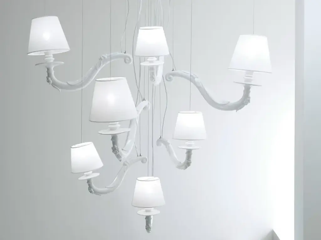 Introduce contemporary charm to your home with the Eva Chandelier from Masiero. The soft, smooth curves of turned wood are impeccably crafted into a column that resembles a luminous fountain. Adding to its modern appeal, the entire piece is lacquered in a glossy or metallic hue. Elevate your space with this sophisticated and exclusive chandelier. Highlights